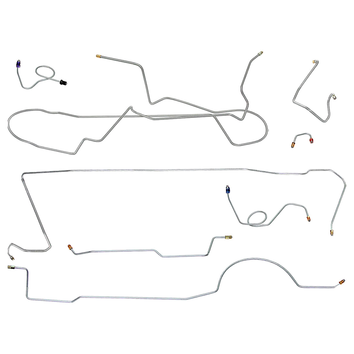 This preformed complete brake line kit will replace all the metal brake lines on your vehicle and includes the master cylinder lines, left front line and right front crossover line, intermediate lines, and rear axle lines/trailing arm lines.