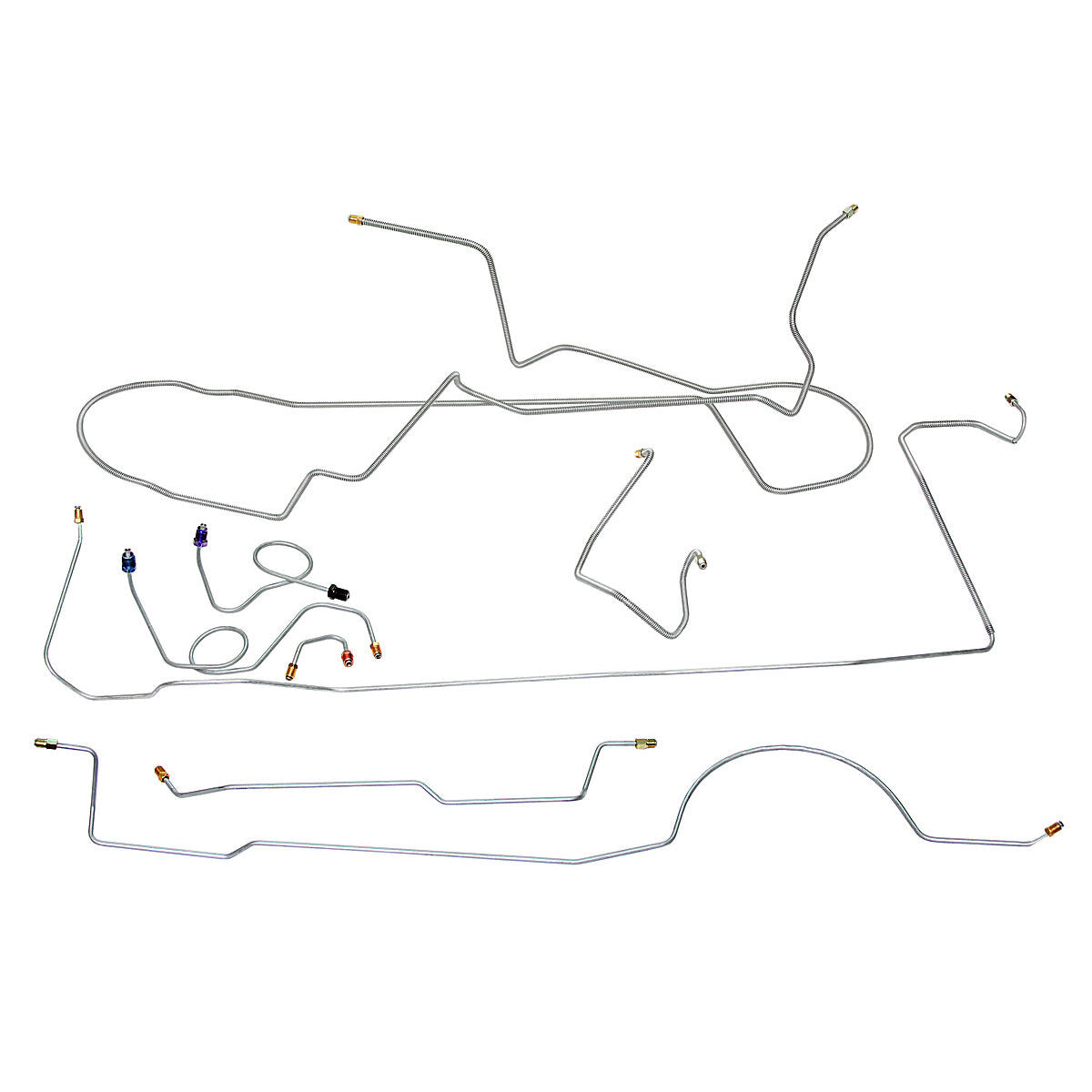 This preformed complete brake line kit will replace all the metal brake lines on your vehicle and includes the master cylinder lines, left front line and right-front crossover line, intermediate lines, and rear axle lines/trailing arm lines.