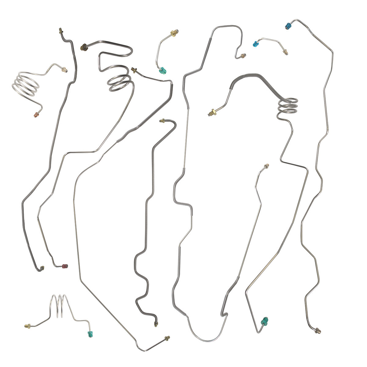 This preformed complete brake line kit will replace all the metal brake lines on your vehicle and includes the master cylinder lines, left front line and right front crossover line, intermediate lines, and rear axle lines/trailing arm lines.