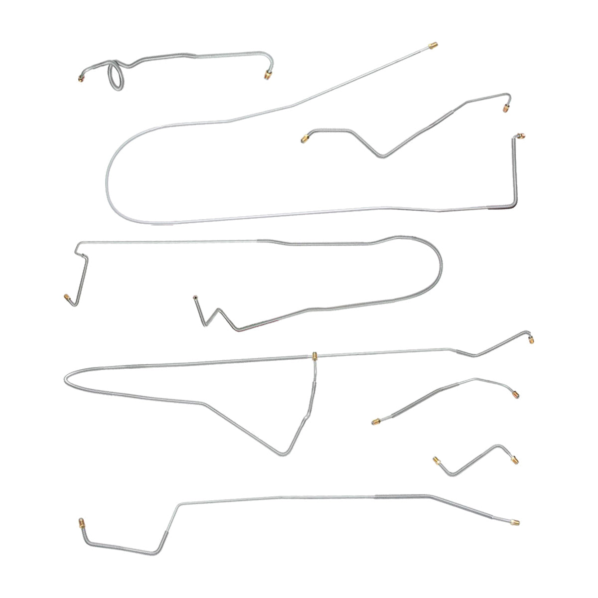 This preformed complete brake line kit will replace all the metal brake lines on your vehicle and includes the master cylinder lines, left front line and right-front crossover line, intermediate lines, and rear axle lines/trailing arm lines.