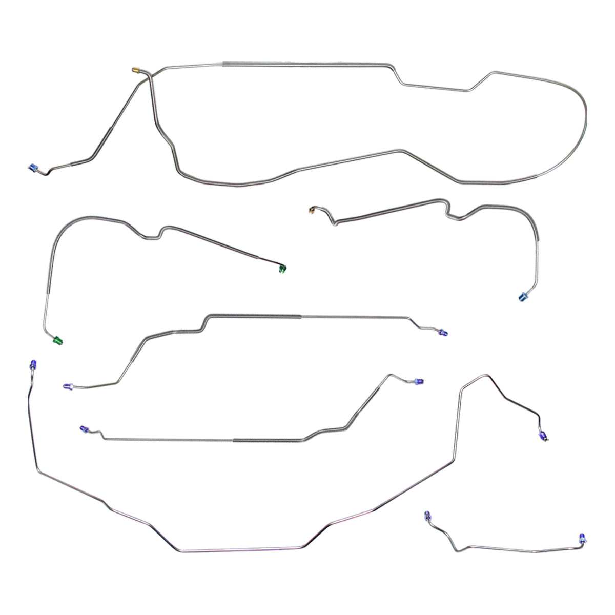 This preformed complete brake line kit will replace all the metal brake lines on your vehicle and includes the master cylinder lines, left front line and right-front crossover line, intermediate lines, and rear axle lines/trailing arm lines.