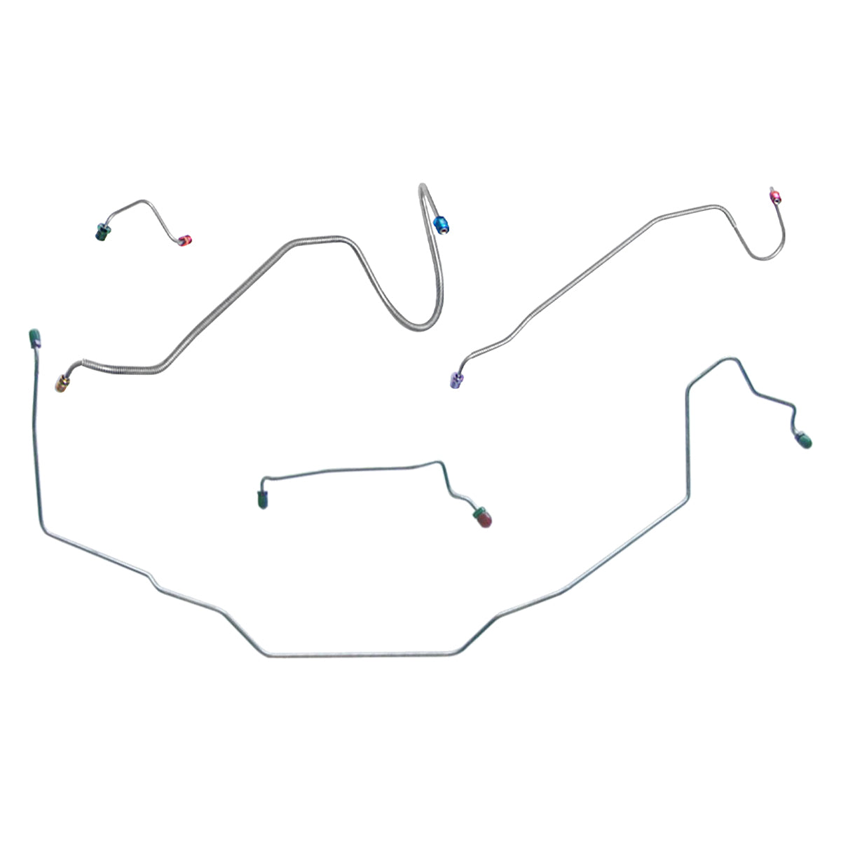 This preformed front brake line kit includes all the metal brake lines to supply the front two wheels of your vehicle and includes the master cylinder lines, left front line, and right front crossover line.