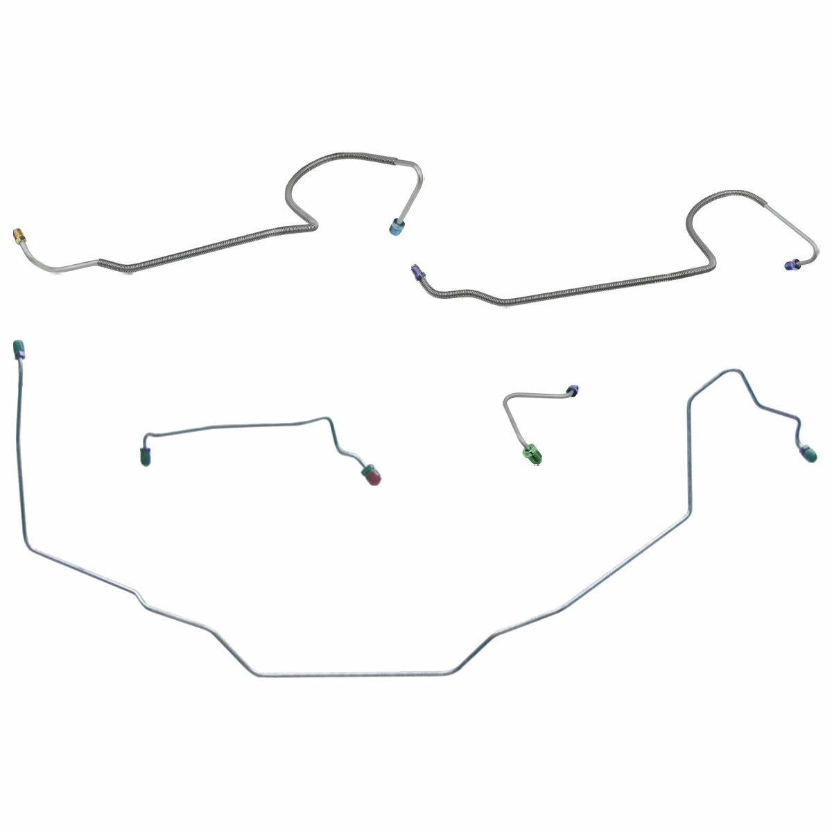 This preformed front brake line kit includes all the metal brake lines to supply the front two wheels of your vehicle and includes the master cylinder lines, left front line, and right front crossover line.