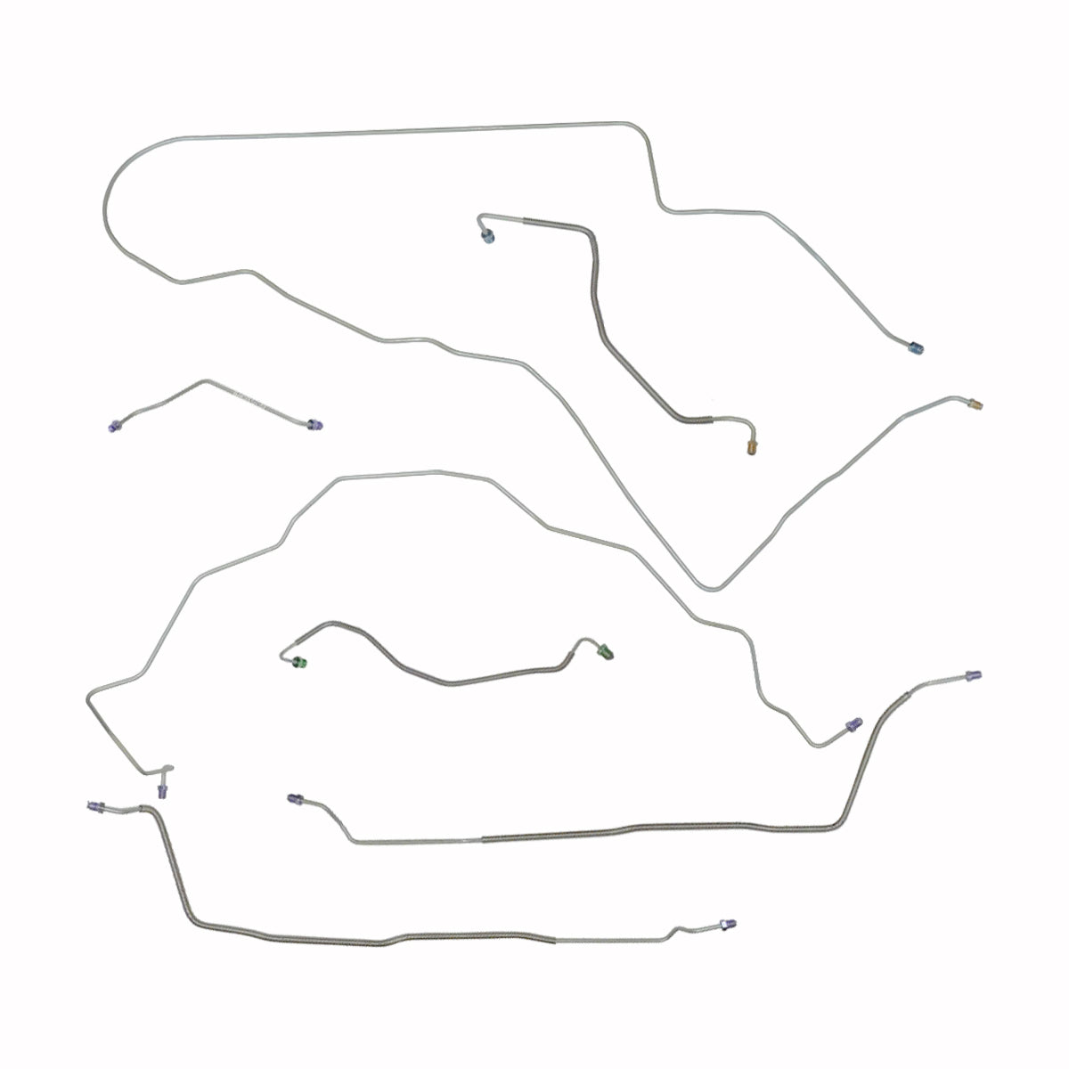 This preformed complete brake line kit will replace all the metal brake lines on your vehicle and includes the master cylinder lines, left front line and right front crossover line, intermediate lines, and rear axle lines/trailing arm lines.