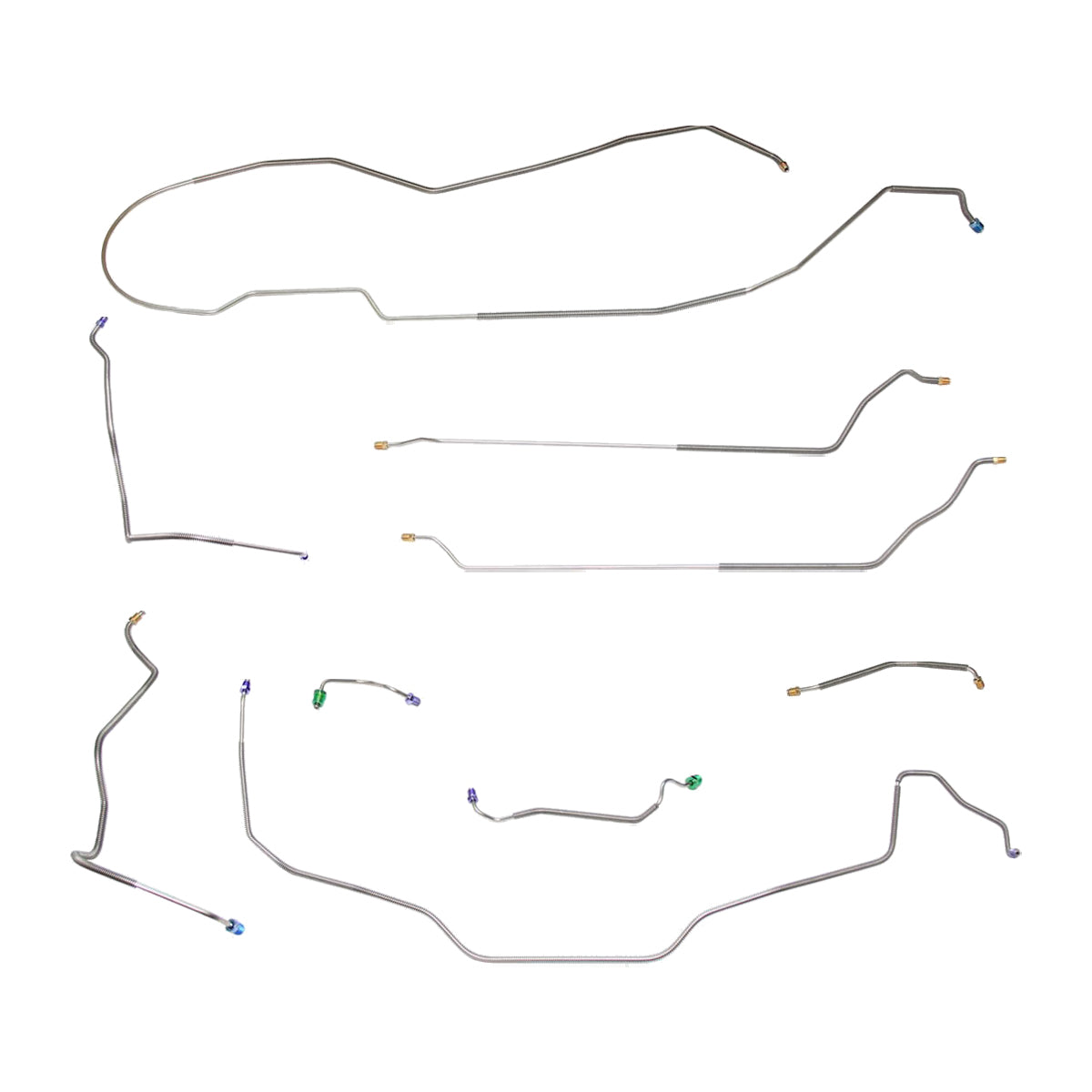 This preformed complete brake line kit will replace all the metal brake lines on your vehicle and includes the master cylinder lines, left front line and right-front crossover line, intermediate lines, and rear axle lines/trailing arm lines.