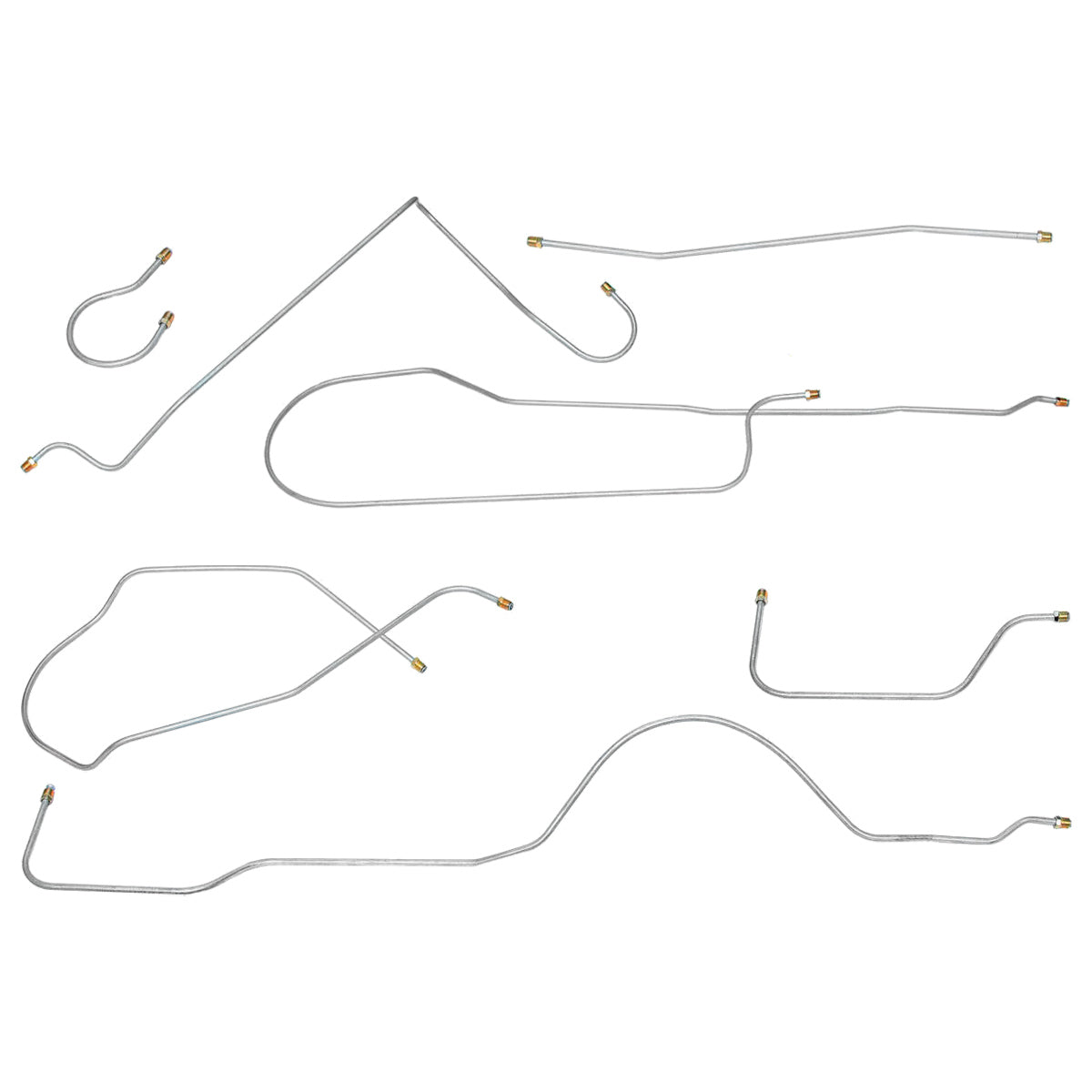 This preformed complete brake line kit will replace all the metal brake lines on your vehicle and includes the master cylinder lines, left front line and right-front crossover line, intermediate lines, and rear axle lines/trailing arm lines.
