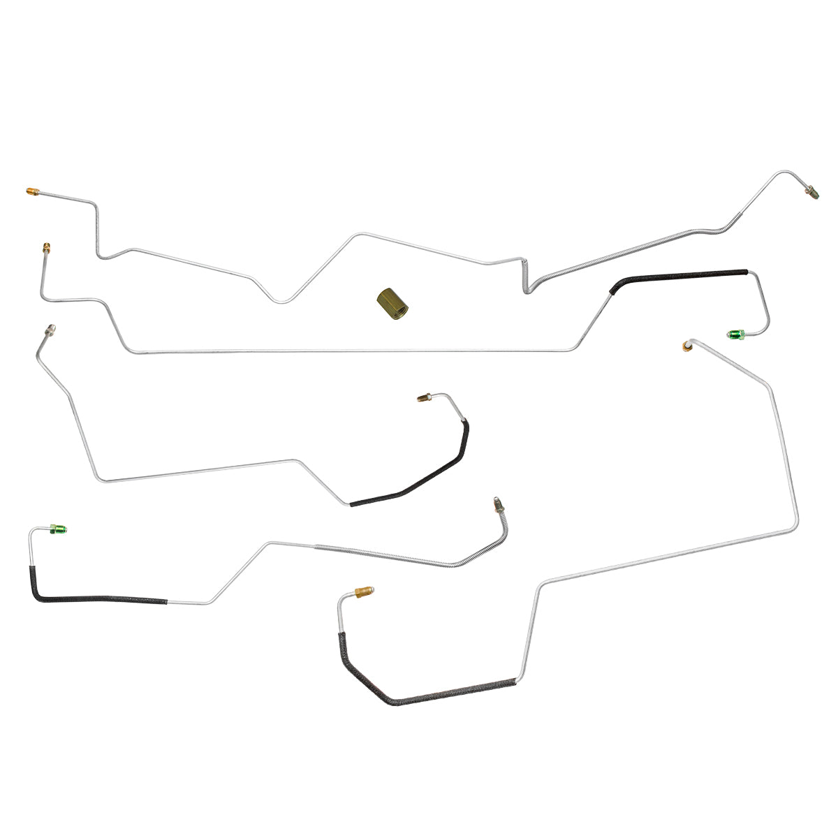 This preformed front brake line kit includes all the metal brake lines to supply the front two wheels of your vehicle and includes the master cylinder lines, left front line, and right front crossover line.