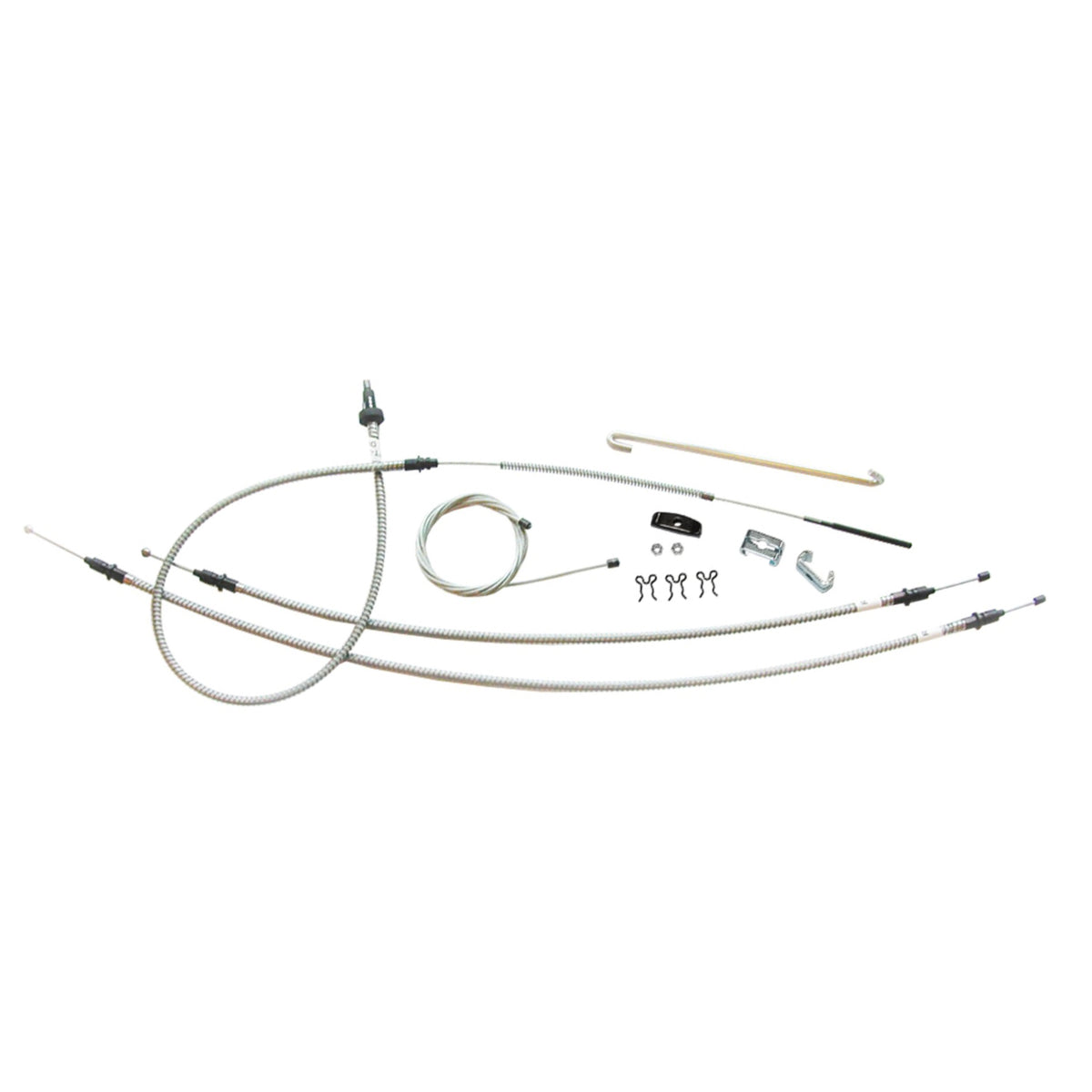 This complete parking brake cable kit replaces all the parking brake cables on your vehicle and includes the front, intermediate, and rear cables as well as all pictured hardware.