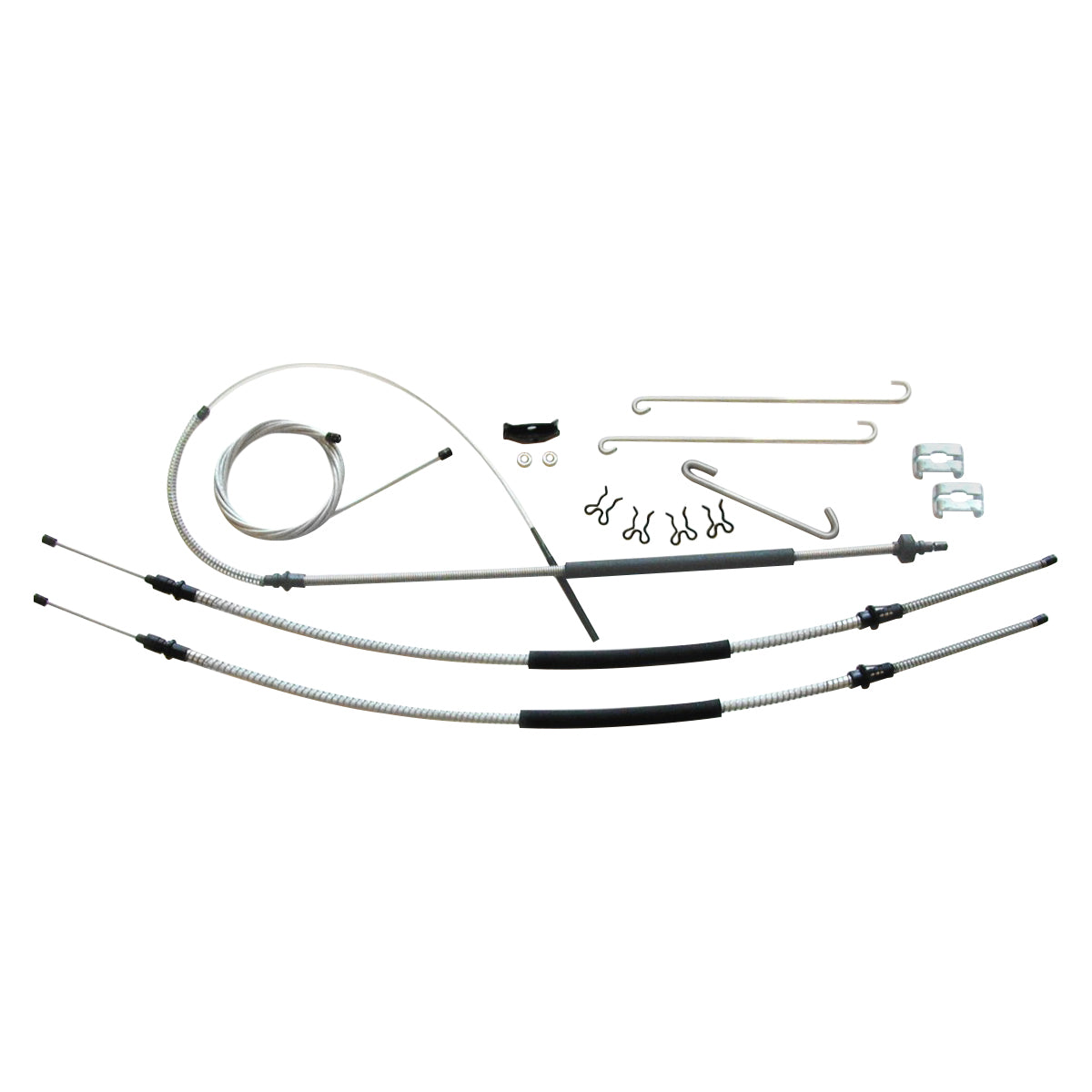 This complete parking brake cable kit replaces all the parking brake cables on your vehicle and includes the front, intermediate, and rear cables as well as all pictured hardware.