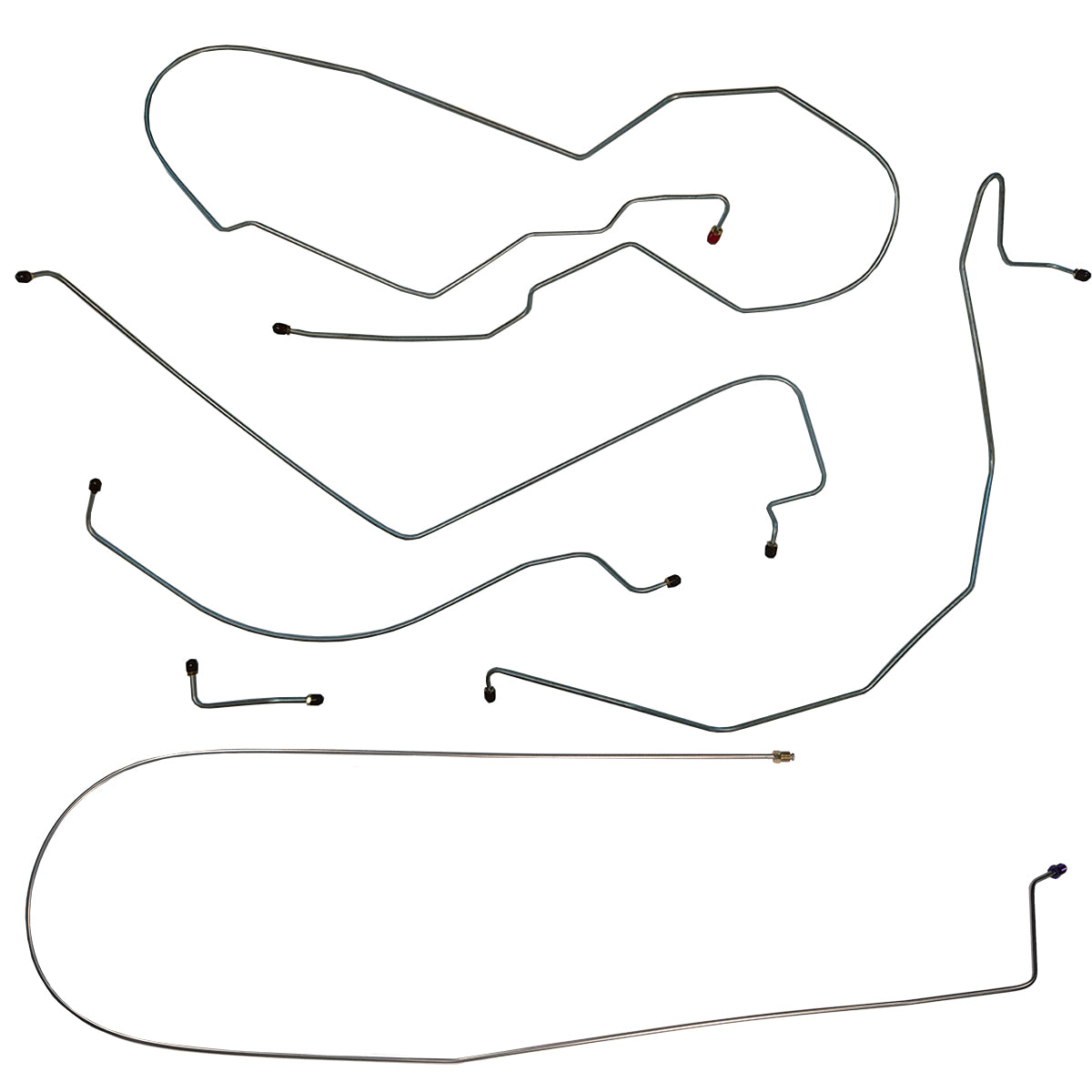This preformed complete brake line kit will replace all the metal brake lines on your vehicle and includes the master cylinder lines, left front line and right front crossover line, intermediate lines, and rear axle lines/trailing arm lines.