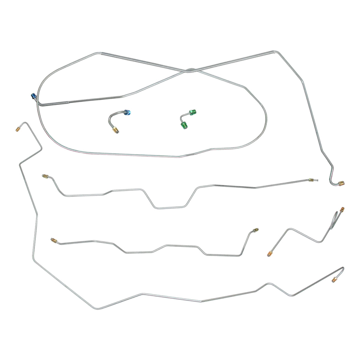 This preformed complete brake line kit will replace all the metal brake lines on your vehicle and includes the master cylinder lines, left front line and right-front crossover line, intermediate lines, and rear axle lines/trailing arm lines.