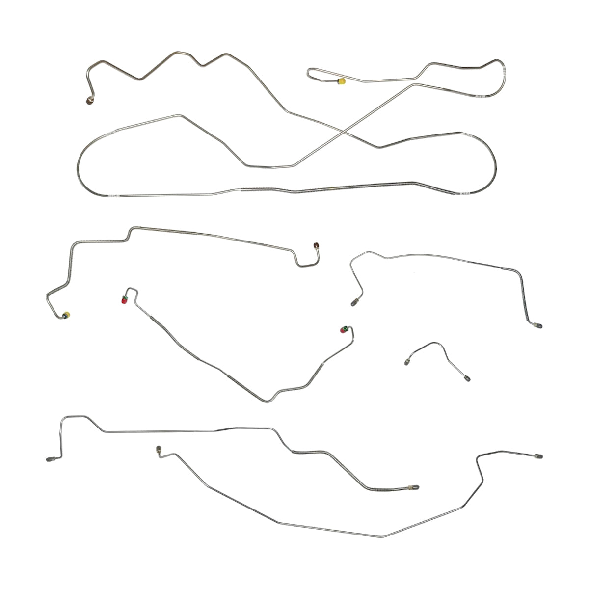 This preformed complete brake line kit will replace all the metal brake lines on your vehicle and includes the master cylinder lines, left front line and right front crossover line, intermediate lines, and rear axle lines/trailing arm lines.