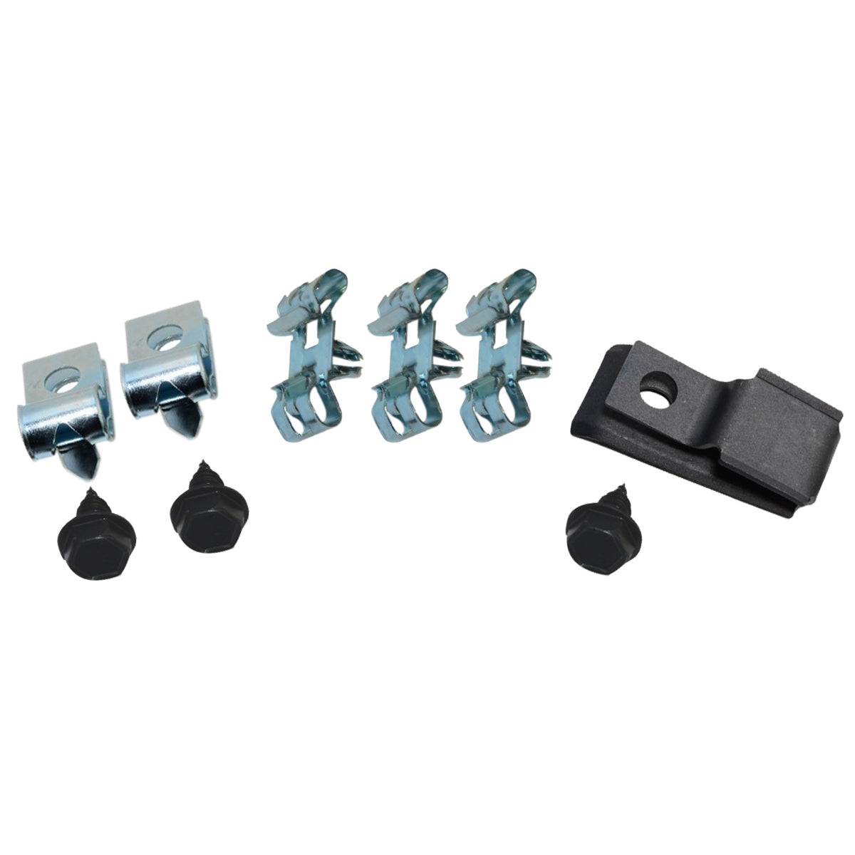 This clip kit includes all clips necessary to secure all the fuel lines except the return line to the chassis of the car: two R style clips, three double snap-in clips, one frame A clip, and three bolts.