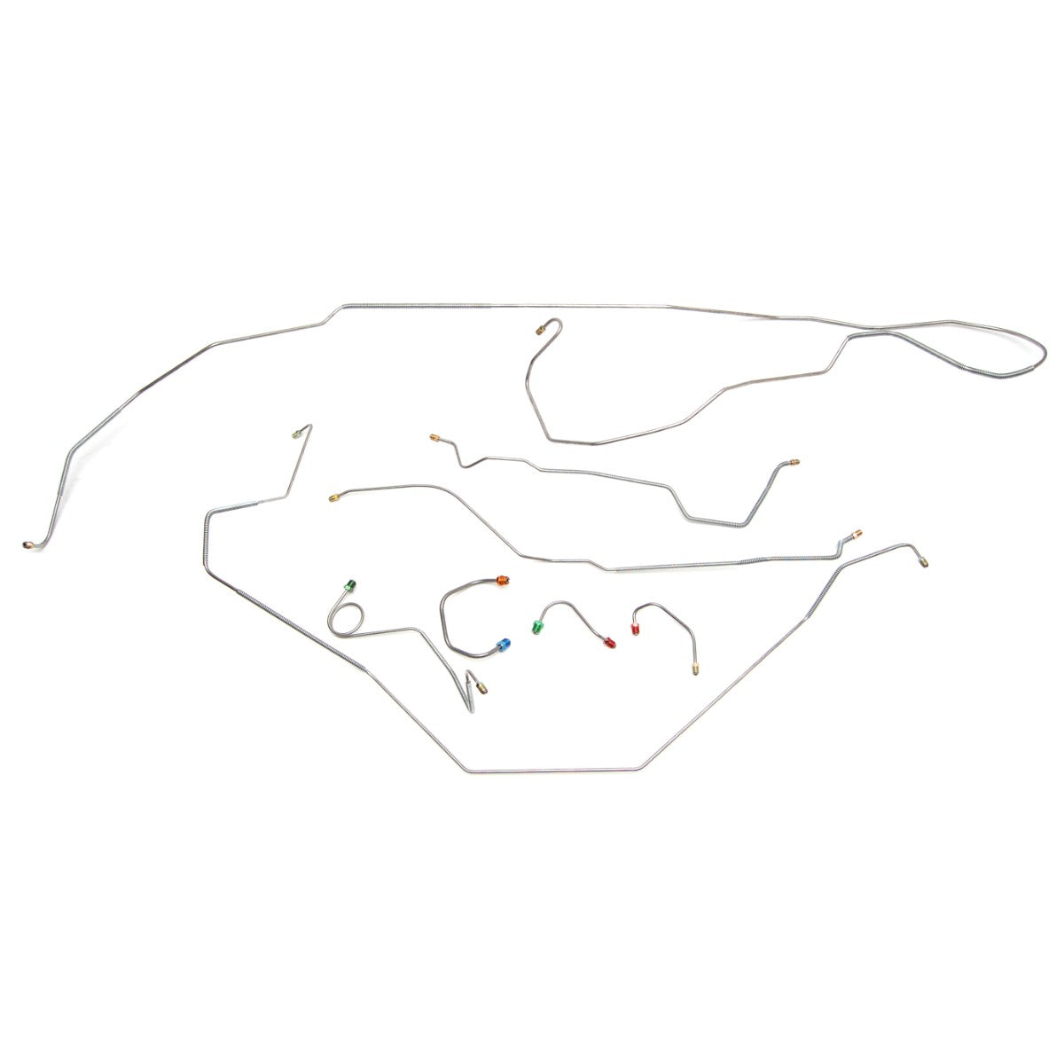 This preformed complete brake line kit will replace all the metal brake lines on your vehicle and includes the master cylinder lines, left front line and right front crossover line, intermediate lines, and rear axle lines/trailing arm lines.