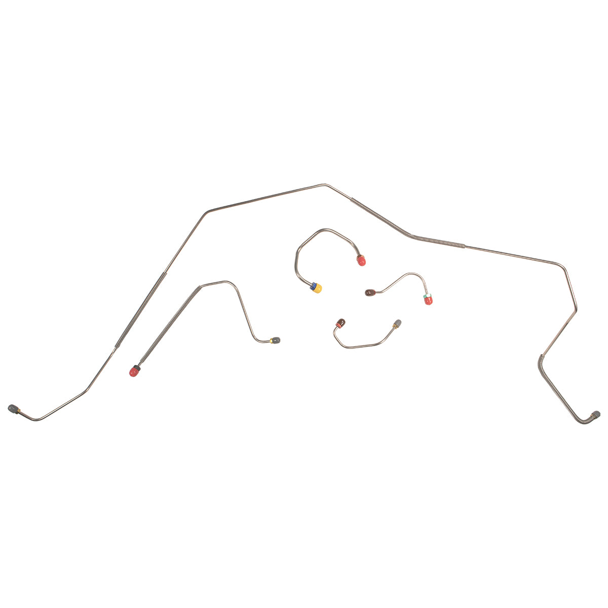 This preformed front brake line kit includes all the metal brake lines to supply the front two wheels of your vehicle and includes the master cylinder lines, left front line, and right front crossover line.