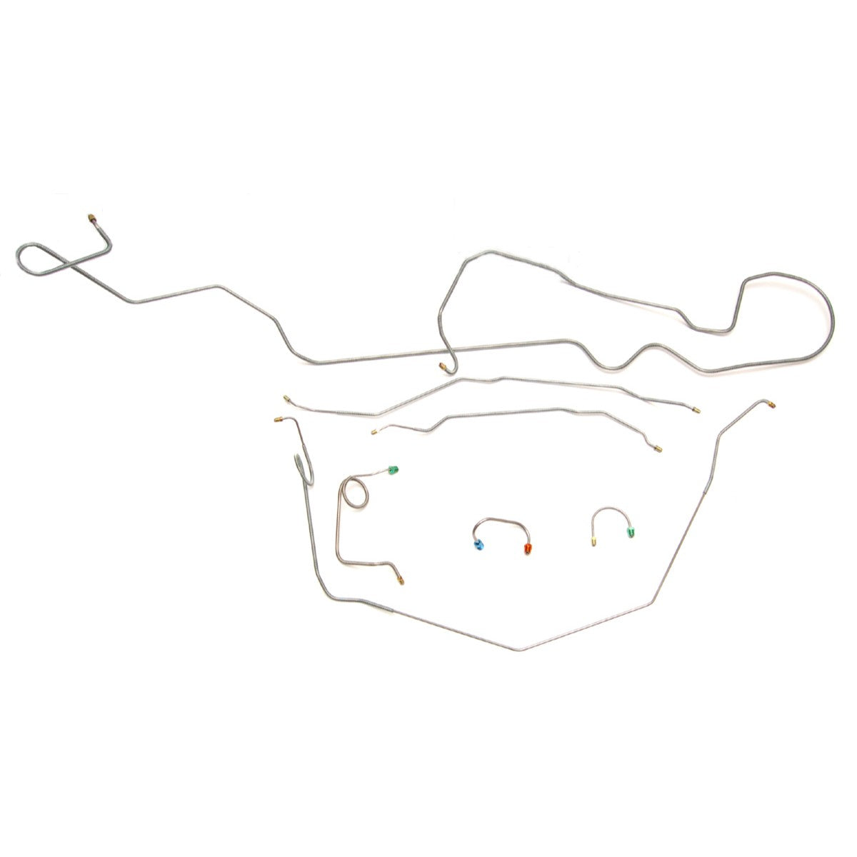 This preformed complete brake line kit will replace all the metal brake lines on your vehicle and includes the master cylinder lines, left front line and right front crossover line, intermediate lines, and rear axle lines/trailing arm lines.