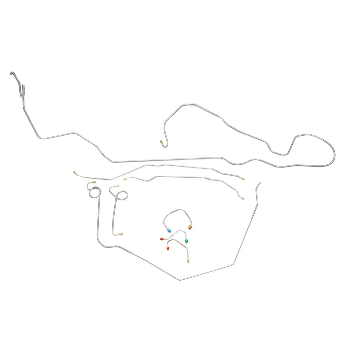 This preformed complete brake line kit will replace all the metal brake lines on your vehicle and includes the master cylinder lines, left front line and right front crossover line, intermediate lines, and rear axle lines/trailing arm lines.