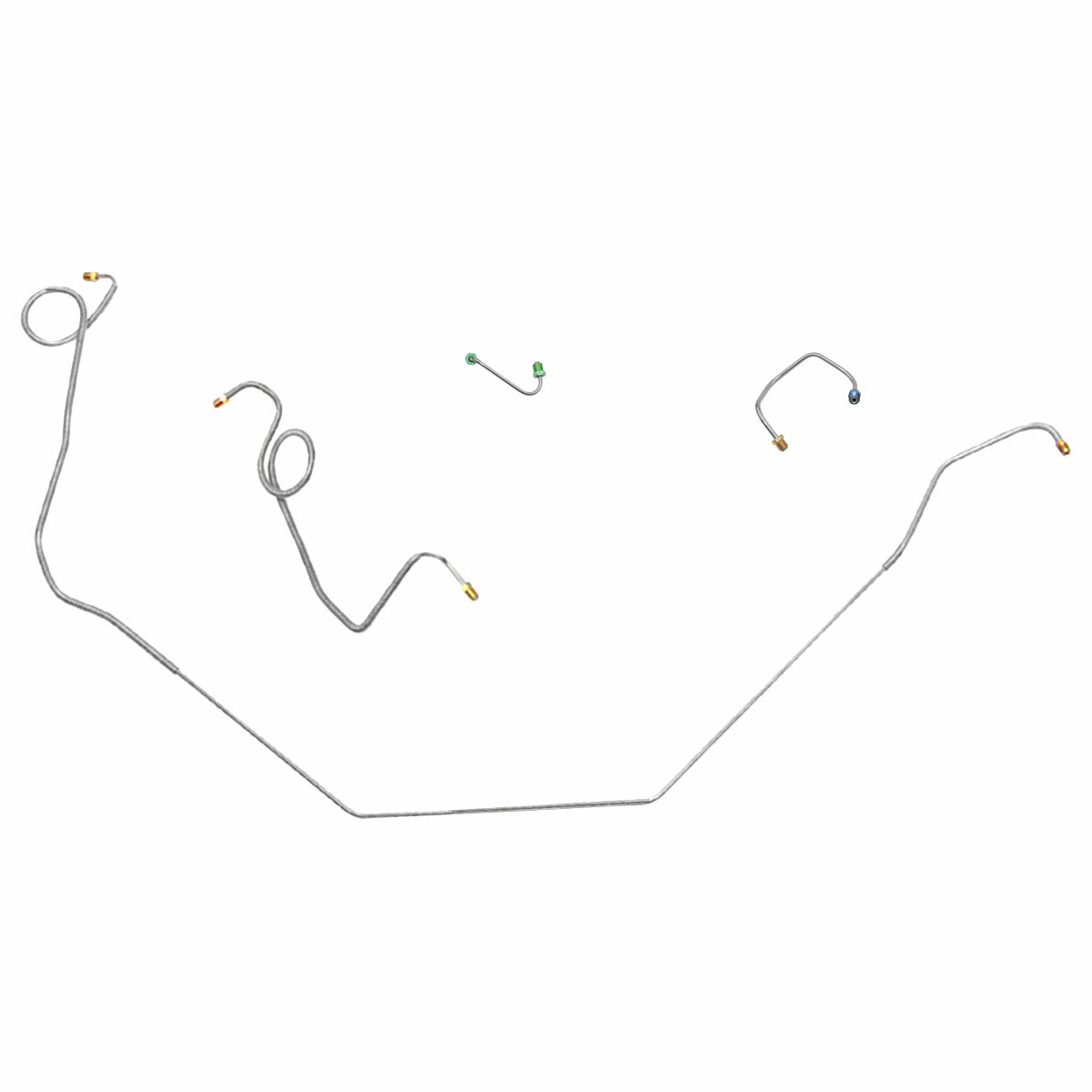 This preformed front brake line kit includes all the metal brake lines to supply the front two wheels of your vehicle and includes the master cylinder lines, left front line, and right front crossover line.