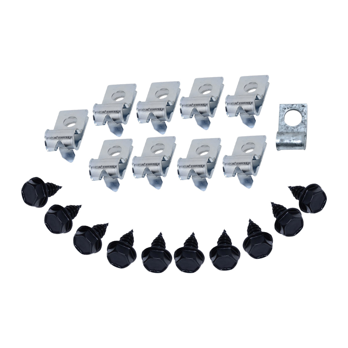 This clip kit includesĀ all clips necessary to secure all the fuel lines except the return line to the chassis of the car: nineĀ R style clips, one 1/2ā line clamp, and ten bolts.