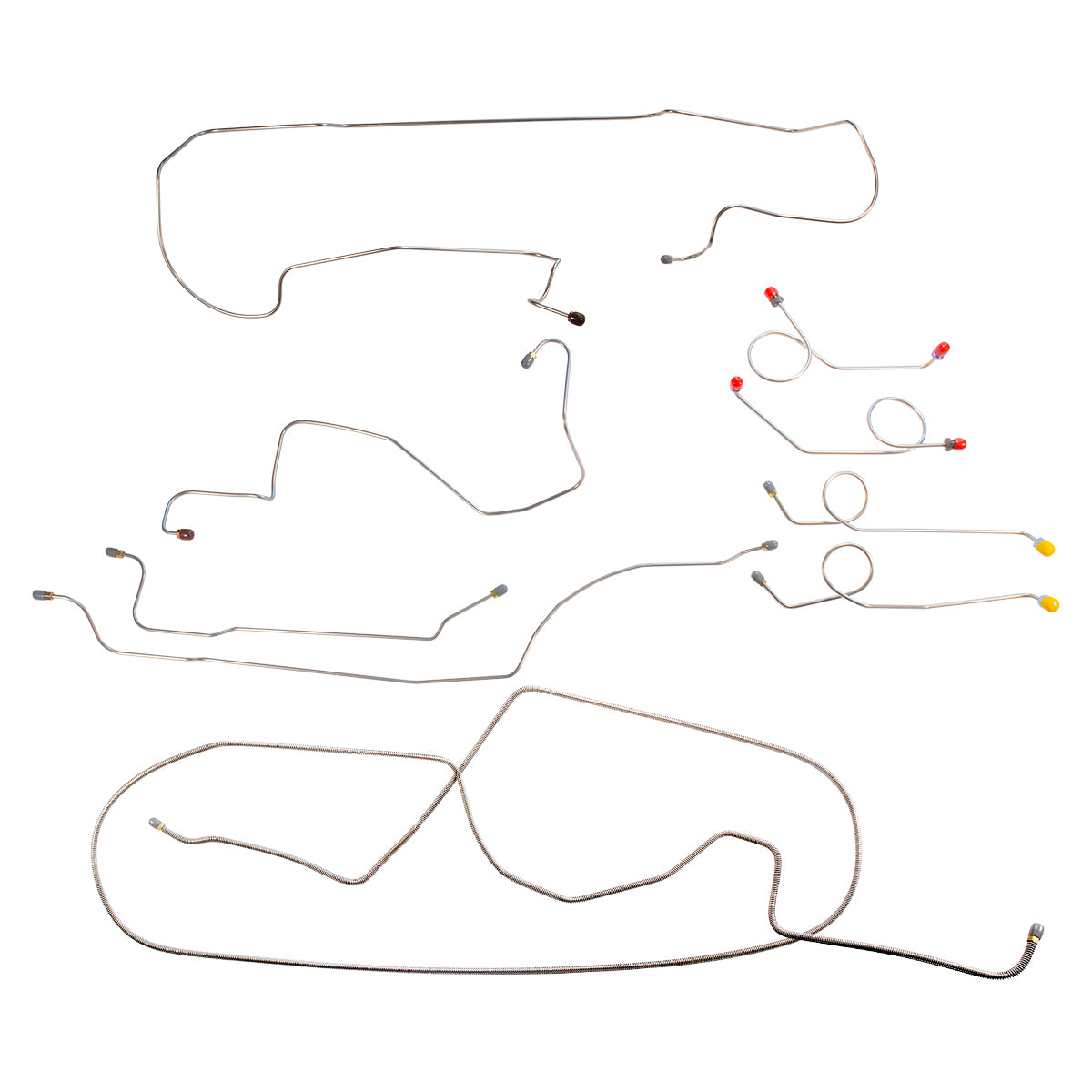 This preformed complete brake line kit will replace all the metal brake lines on your vehicle and includes the master cylinder lines, left front line and right-front crossover line, intermediate lines, and rear axle lines/trailing arm lines.