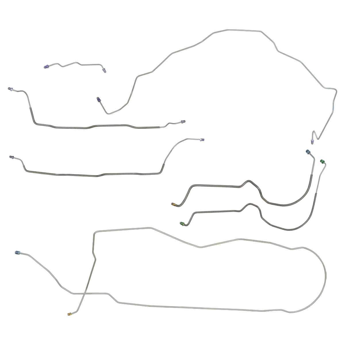 This preformed complete brake line kit will replace all the metal brake lines on your vehicle and includes the master cylinder lines, left front line and right front crossover line, intermediate lines, and rear axle lines/trailing arm lines.