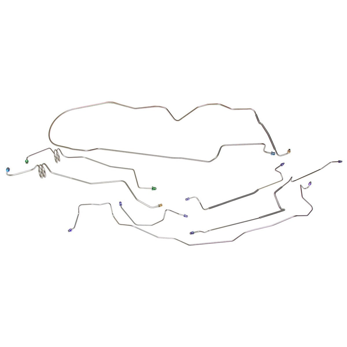 This preformed complete brake line kit will replace all the metal brake lines on your vehicle and includes the master cylinder lines, left front line and right front crossover line, intermediate lines, and rear axle lines/trailing arm lines.