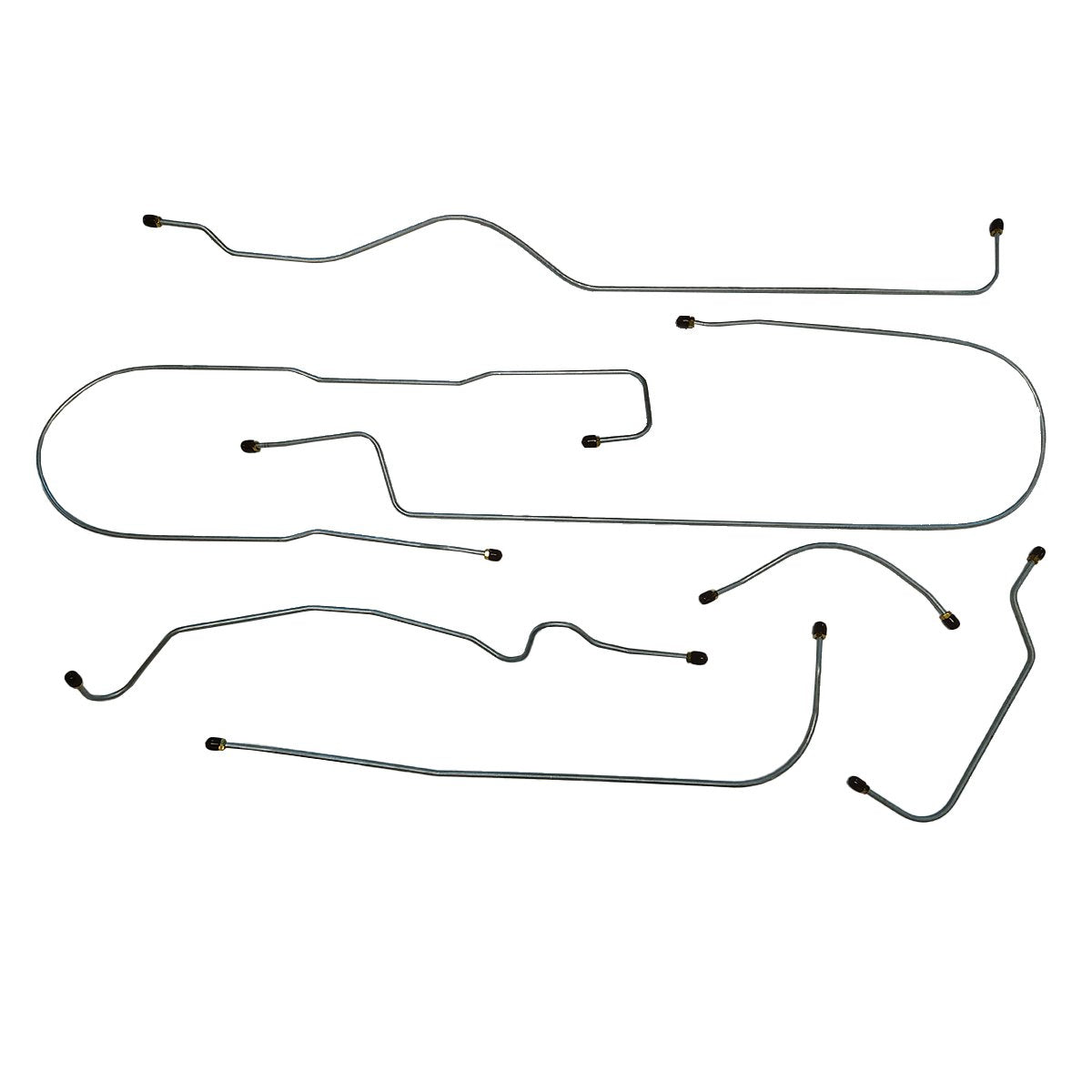 This preformed complete brake line kit will replace all the metal brake lines on your vehicle and includes the master cylinder lines, left front line and right front crossover line, intermediate lines, and rear axle lines/trailing arm lines.