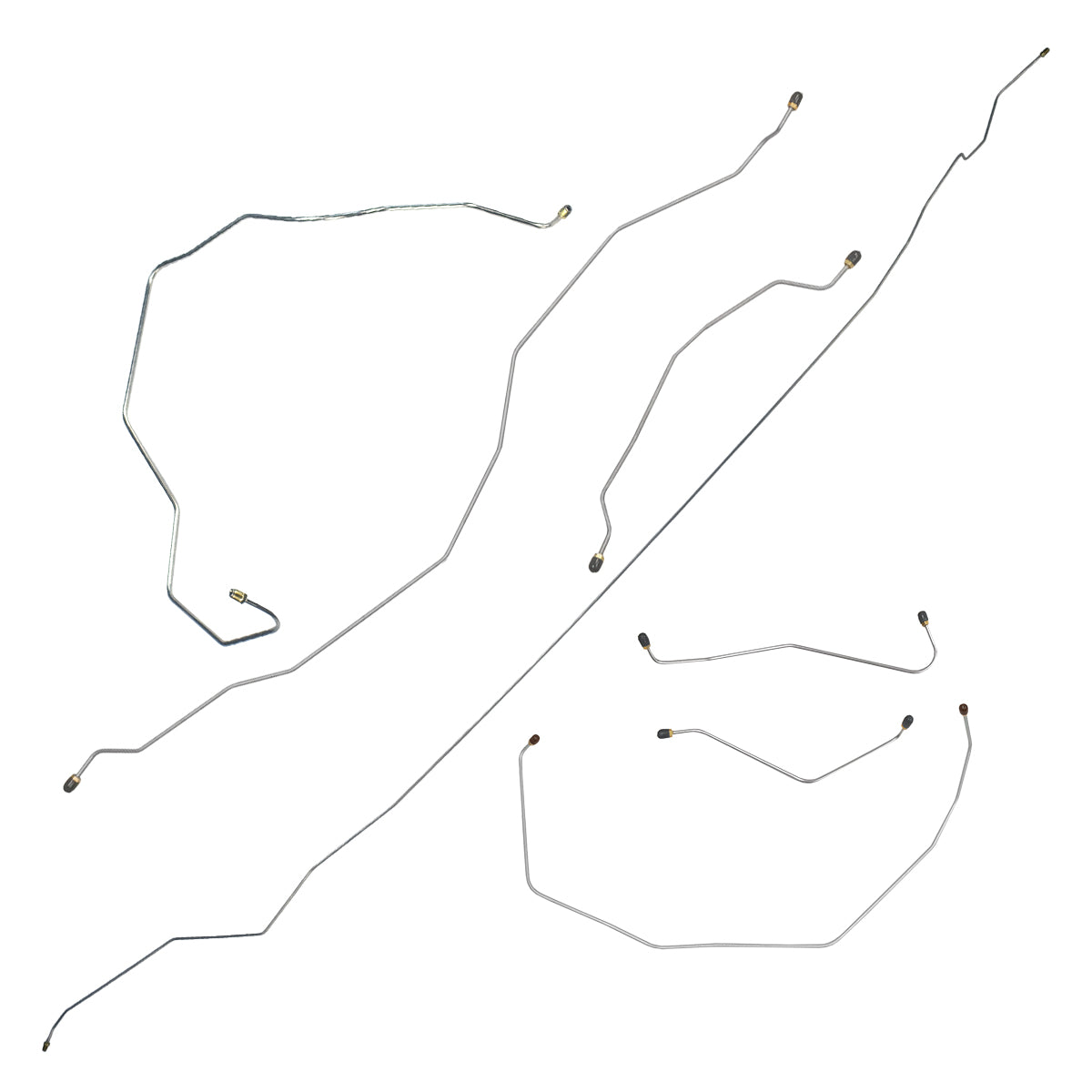 This preformed complete brake line kit will replace all the metal brake lines on your vehicle and includes the master cylinder lines, left front line and right-front crossover line, intermediate lines, and rear axle lines/trailing arm lines.