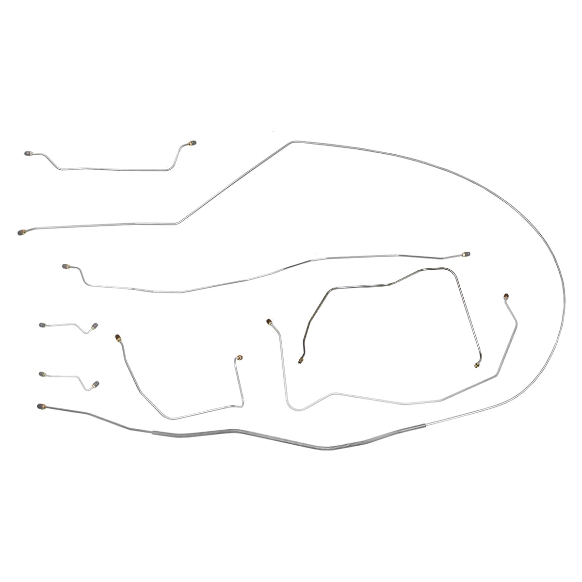 This preformed complete brake line kit will replace all the metal brake lines on your vehicle and includes the master cylinder lines, left front line and right-front crossover line, intermediate lines, and rear axle lines/trailing arm lines.