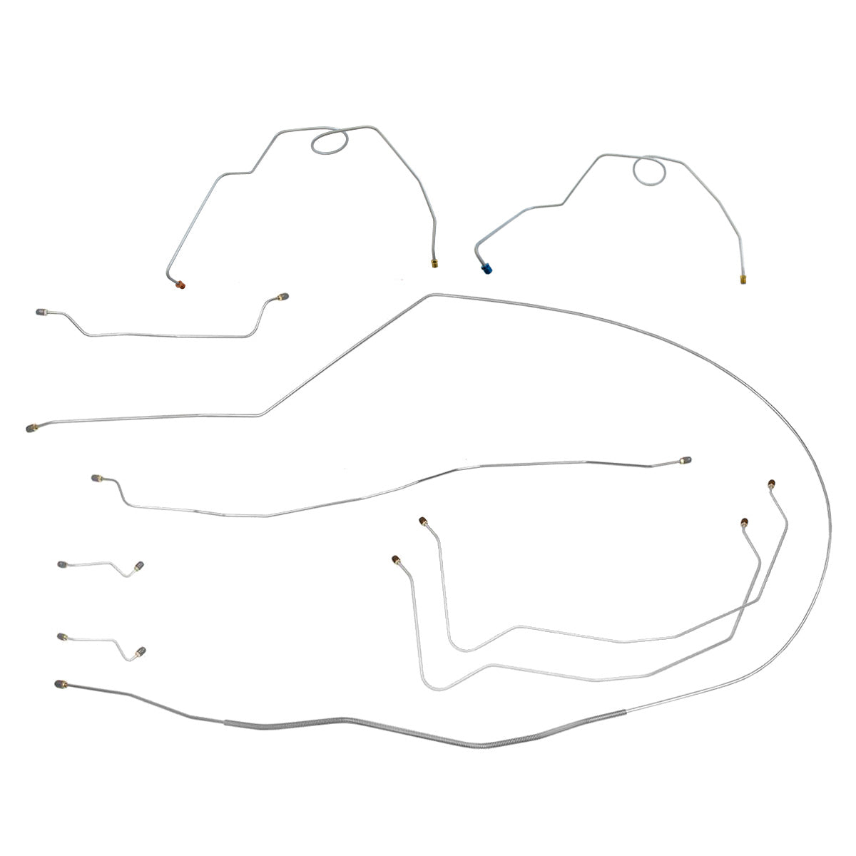 This preformed complete brake line kit will replace all the metal brake lines on your vehicle and includes the master cylinder lines, left front line and right front crossover line, intermediate lines, and rear axle lines/trailing arm lines.