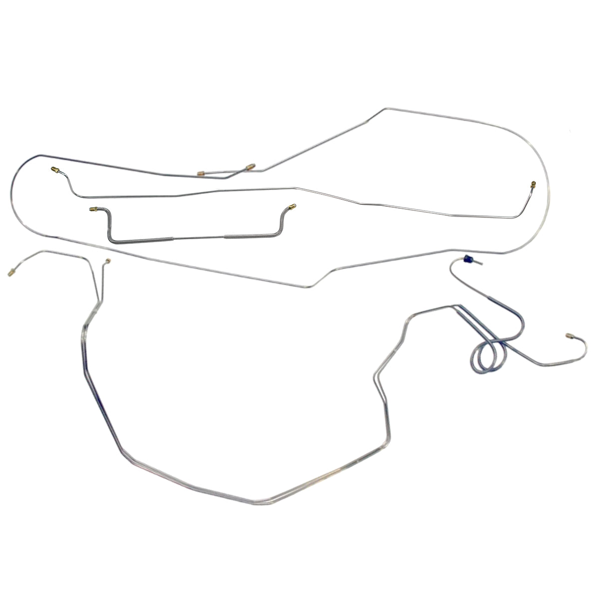 This preformed complete brake line kit will replace all the metal brake lines on your vehicle and includes the master cylinder lines, left front line and right front crossover line, intermediate lines, and rear axle lines/trailing arm lines.