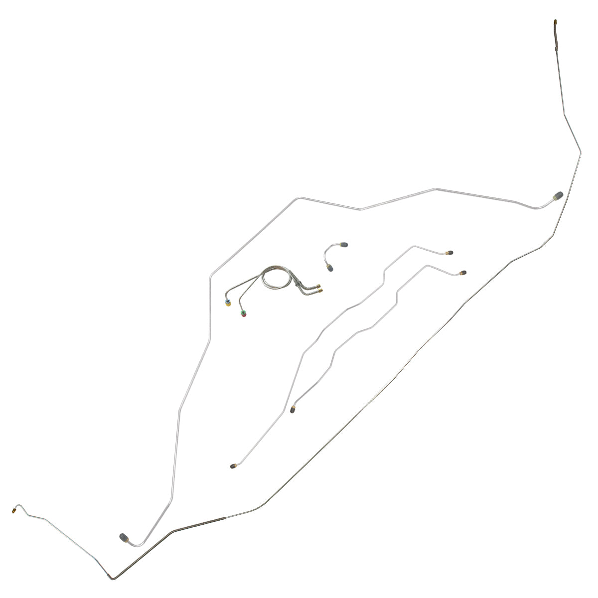This preformed complete brake line kit will replace all the metal brake lines on your vehicle and includes the master cylinder lines, left front line and right front crossover line, intermediate lines, and rear axle lines/trailing arm lines.