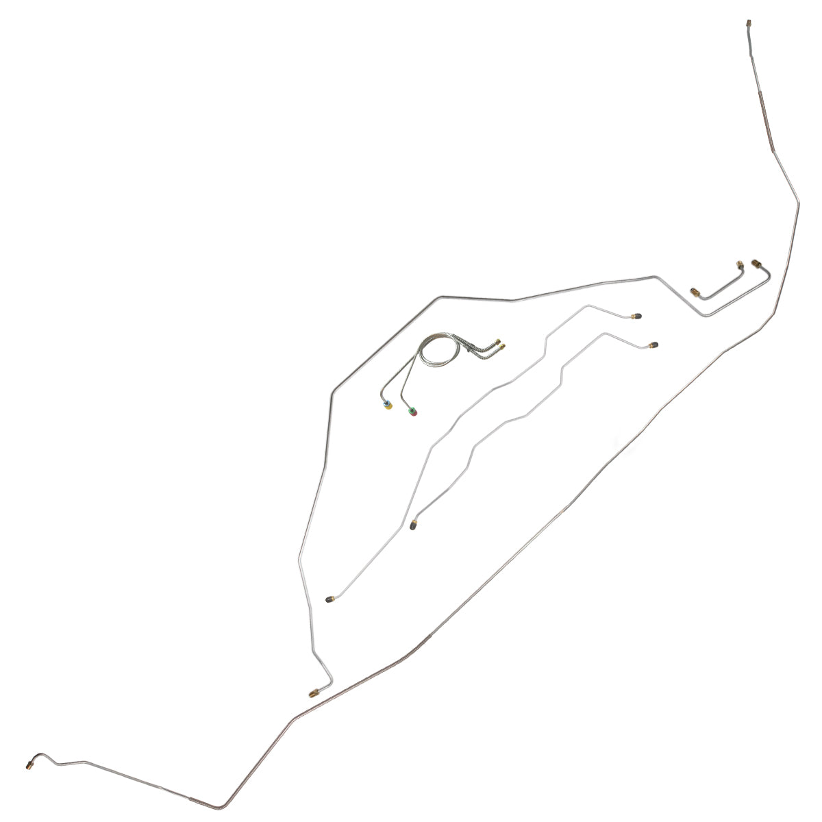 This preformed complete brake line kit will replace all the metal brake lines on your vehicle and includes the master cylinder lines, left front line and right front crossover line, intermediate lines, and rear axle lines/trailing arm lines.