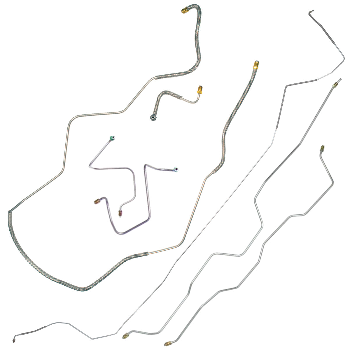 This preformed complete brake line kit will replace all the metal brake lines on your vehicle and includes the master cylinder lines, left front line and right front crossover line, intermediate lines, and rear axle lines/trailing arm lines.
