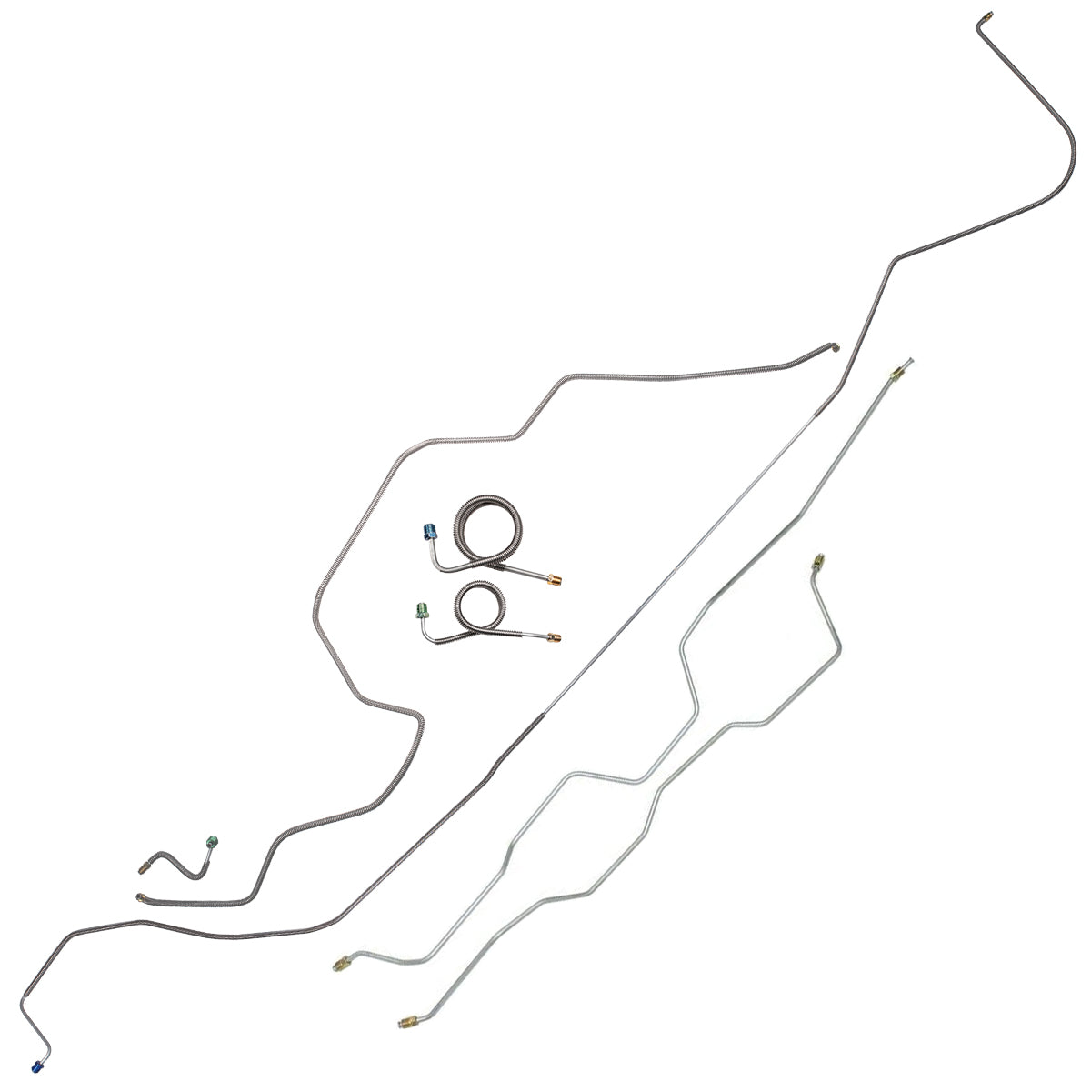 This preformed complete brake line kit will replace all the metal brake lines on your vehicle and includes the master cylinder lines, left front line and right front crossover line, intermediate lines, and rear axle lines/trailing arm lines.