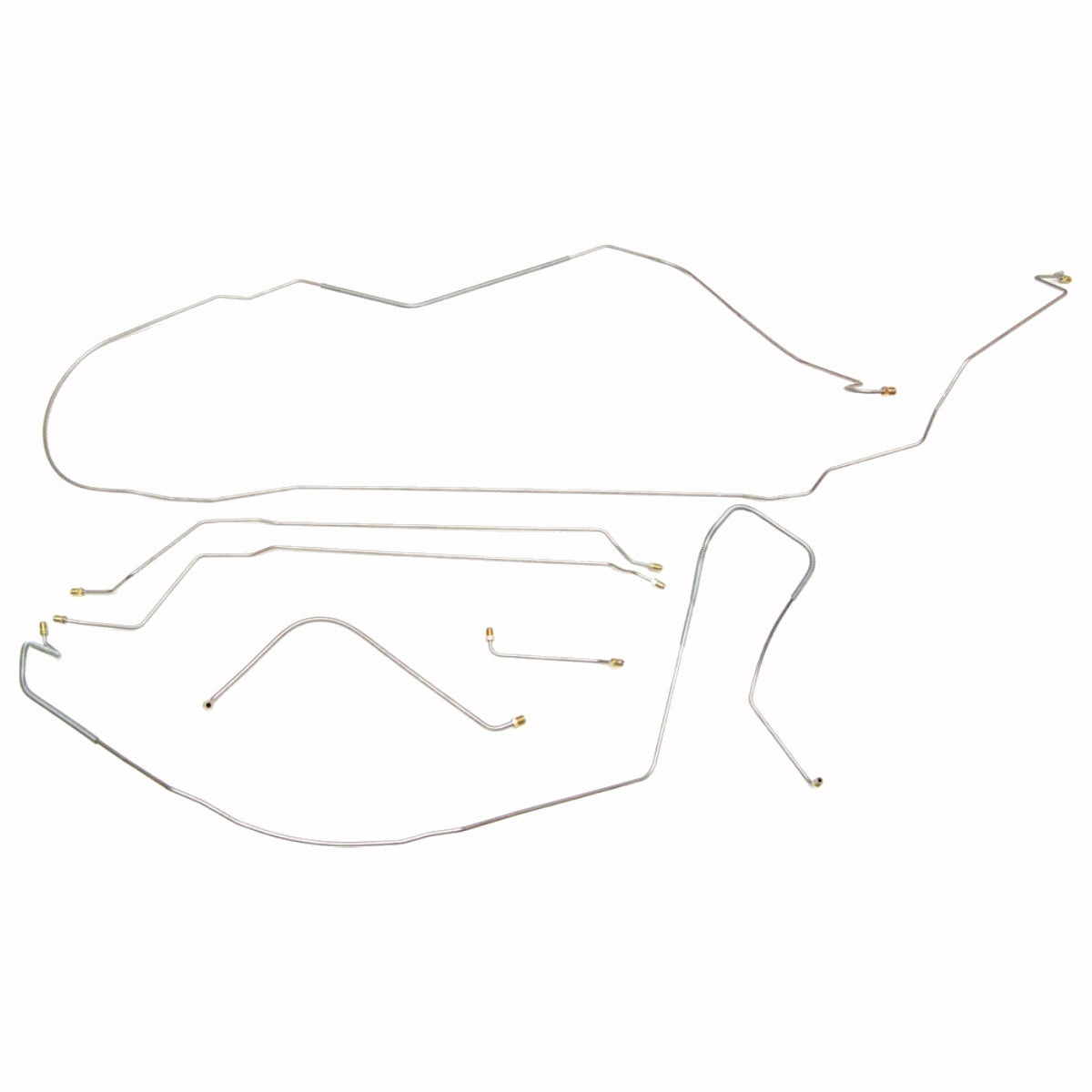 This preformed complete brake line kit will replace all the metal brake lines on your vehicle and includes the master cylinder lines, left front line and right-front crossover line, intermediate lines, and rear axle lines/trailing arm lines.