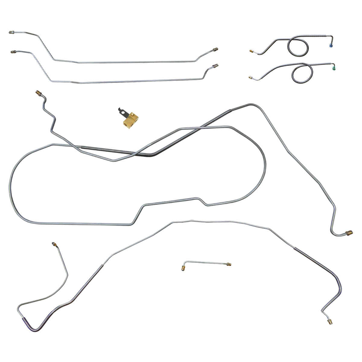 This preformed complete brake line kit will replace all the metal brake lines on your vehicle and includes the master cylinder lines, left front line and right front crossover line, intermediate lines, and rear axle lines/trailing arm lines.