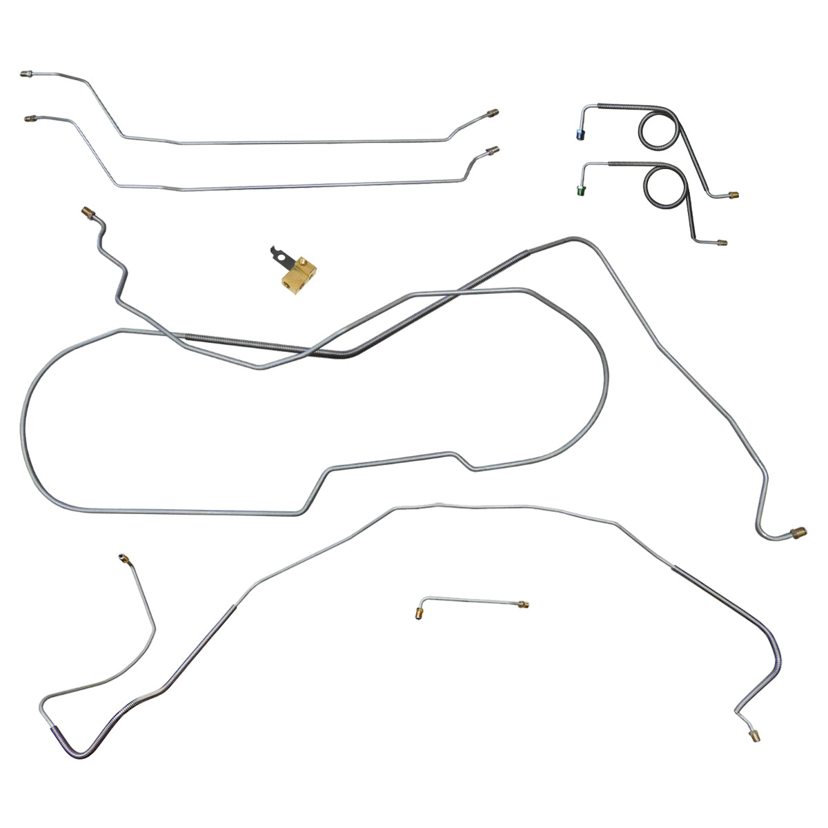 This preformed complete brake line kit will replace all the metal brake lines on your vehicle and includes the master cylinder lines, left front line and right front crossover line, intermediate lines, and rear axle lines/trailing arm lines.