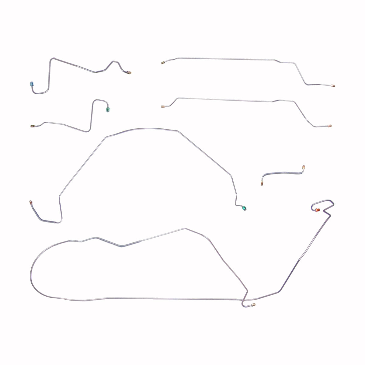 This preformed complete brake line kit will replace all the metal brake lines on your vehicle and includes the master cylinder lines, left front line and right-front crossover line, intermediate lines, and rear axle lines/trailing arm lines.