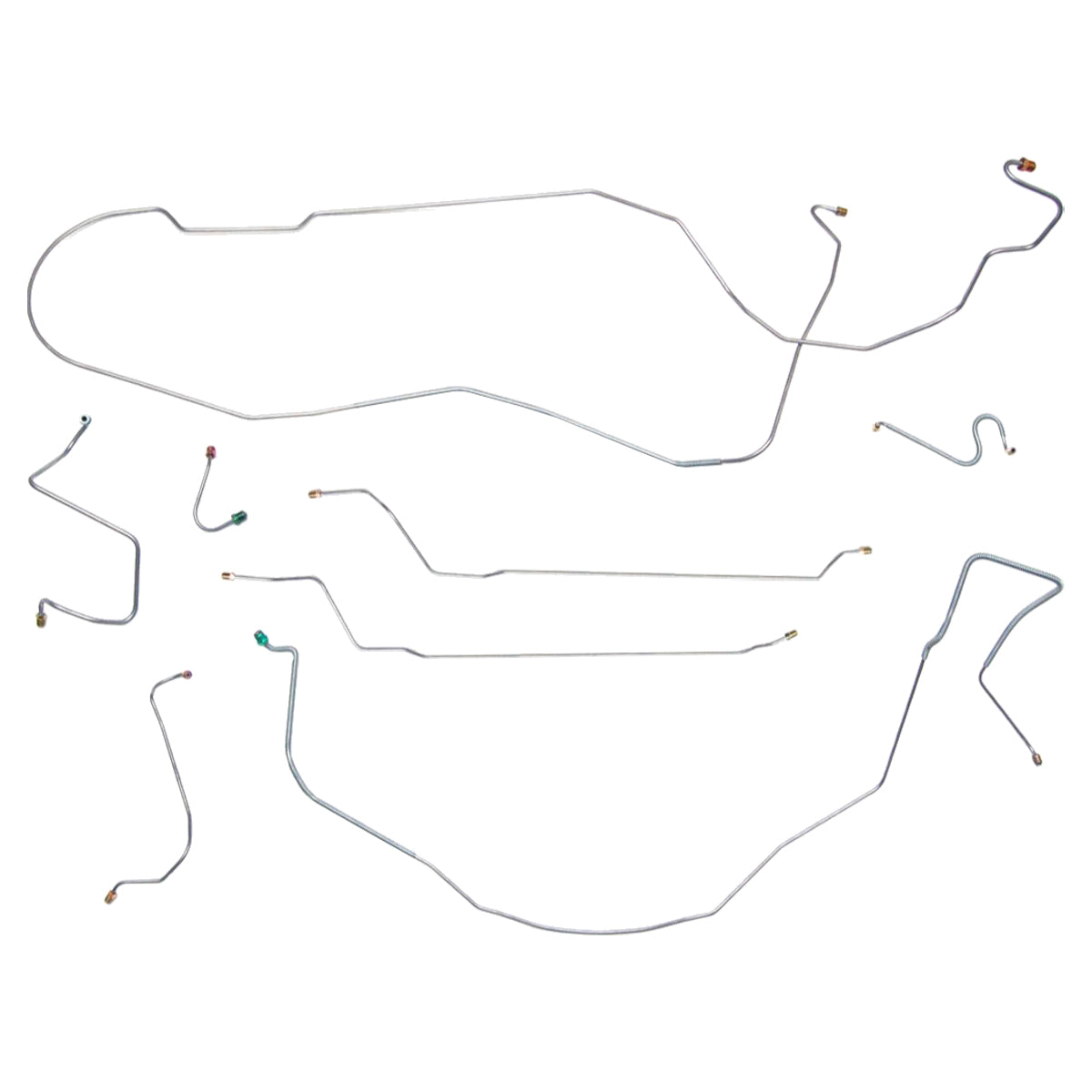 This preformed complete brake line kit will replace all the metal brake lines on your vehicle and includes the master cylinder lines, left front line and right-front crossover line, intermediate lines, and rear axle lines/trailing arm lines.