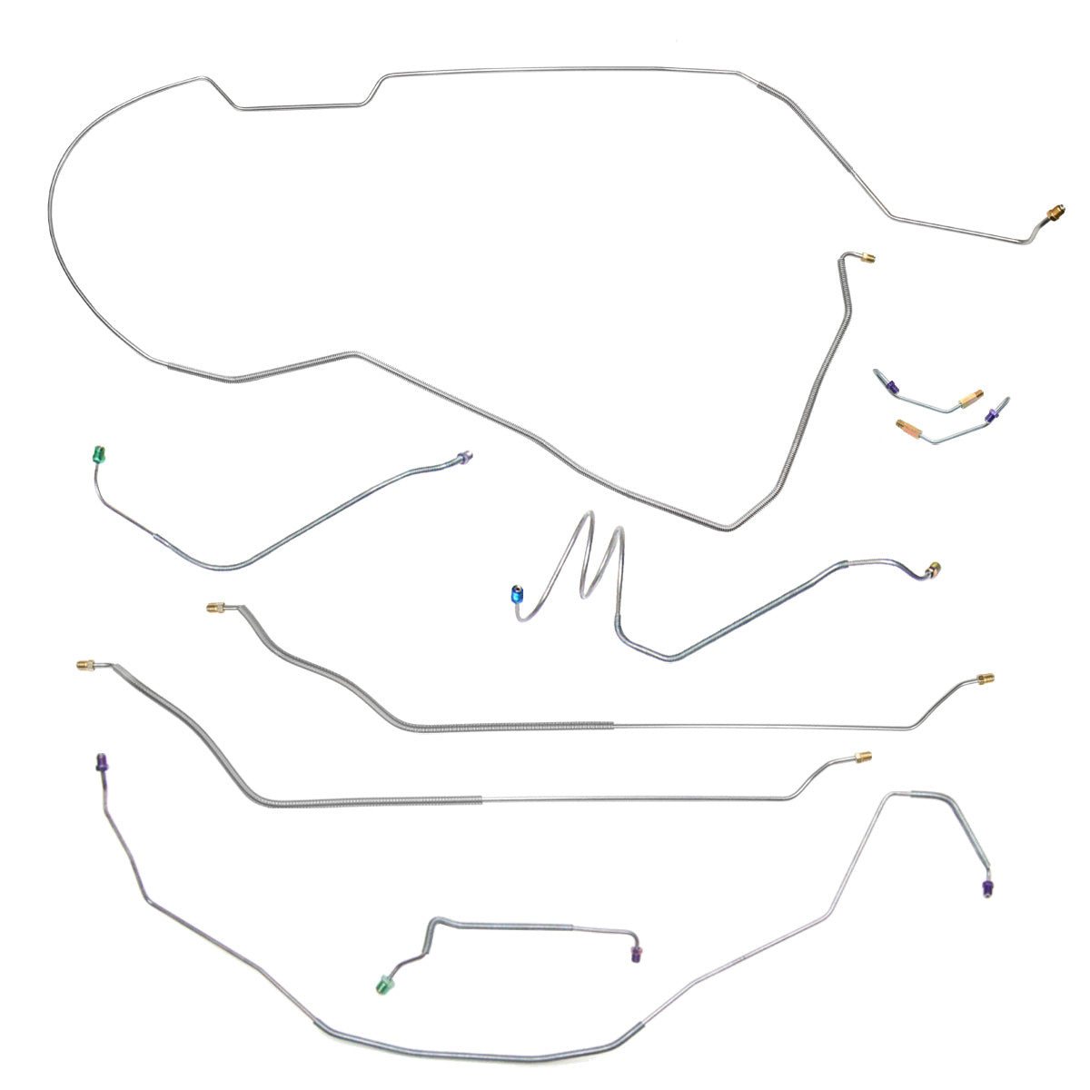 This preformed complete brake line kit will replace all the metal brake lines on your vehicle and includes the master cylinder lines, left front line and right-front crossover line, intermediate lines, and rear axle lines/trailing arm lines.