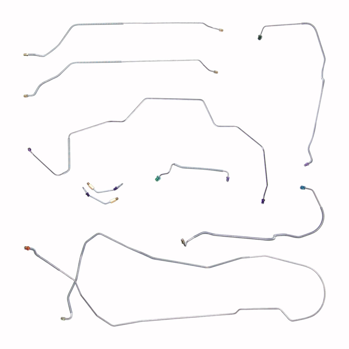 This preformed complete brake line kit will replace all the metal brake lines on your vehicle and includes the master cylinder lines, left front line and right-front crossover line, intermediate lines, and rear axle lines/trailing arm lines.