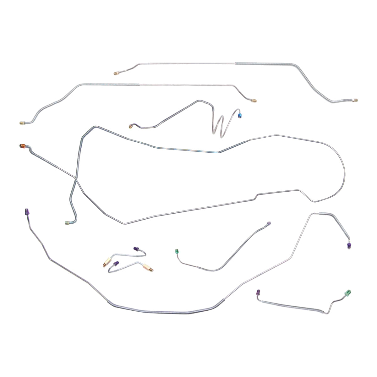 This preformed complete brake line kit will replace all the metal brake lines on your vehicle and includes the master cylinder lines, left front line and right-front crossover line, intermediate lines, and rear axle lines/trailing arm lines.