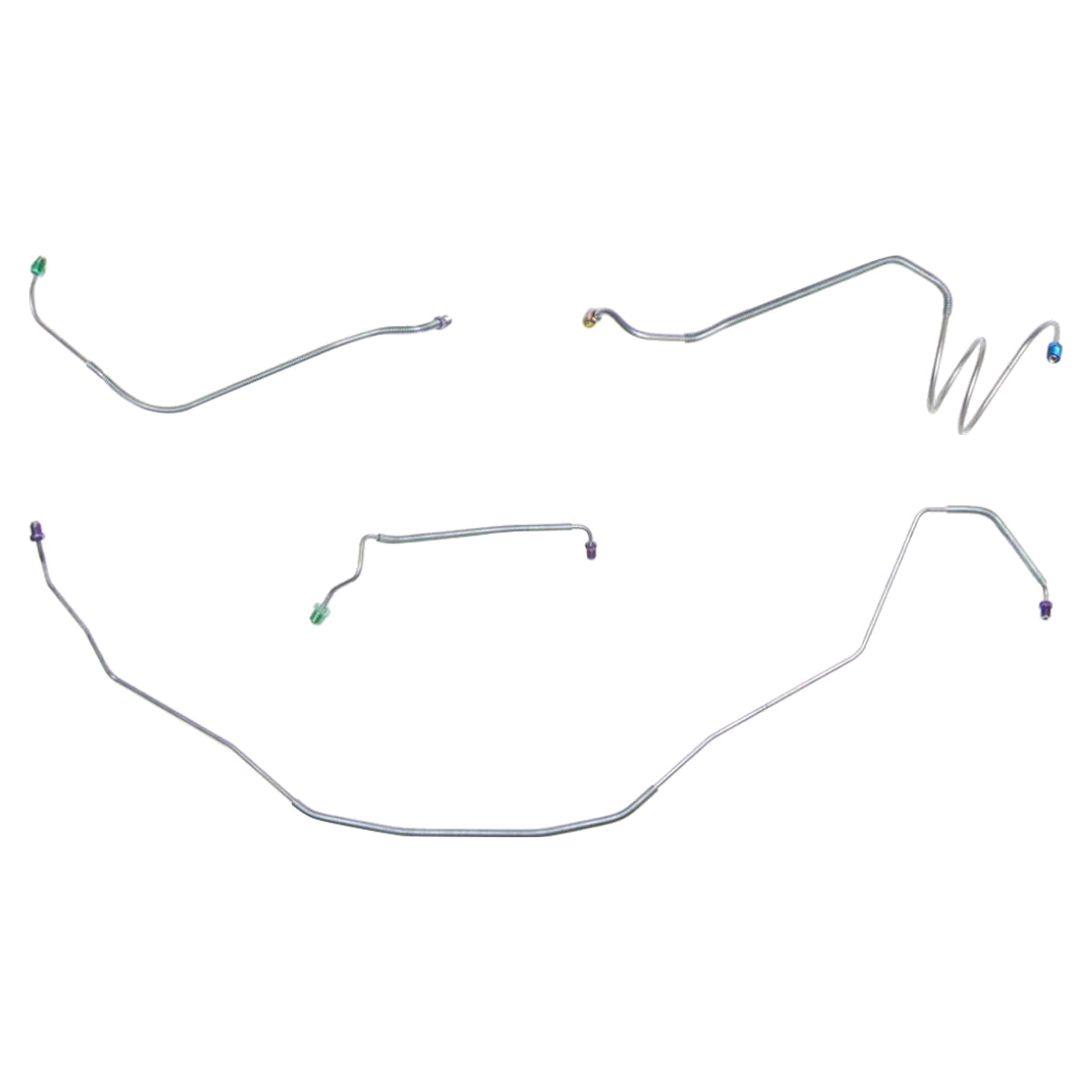 This preformed complete brake line kit will replace all the metal brake lines on your vehicle and includes the master cylinder lines, left front line and right-front crossover line, intermediate lines, and rear axle lines/trailing arm lines.