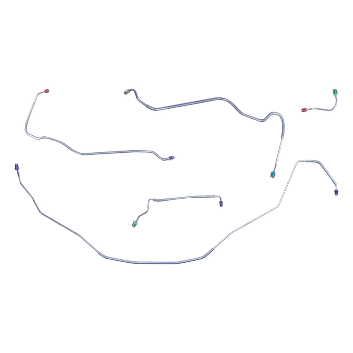 This preformed front brake line kit includes all the metal brake lines to supply the front two wheels of your vehicle and includes the master cylinder lines, left front line, and right front crossover line.