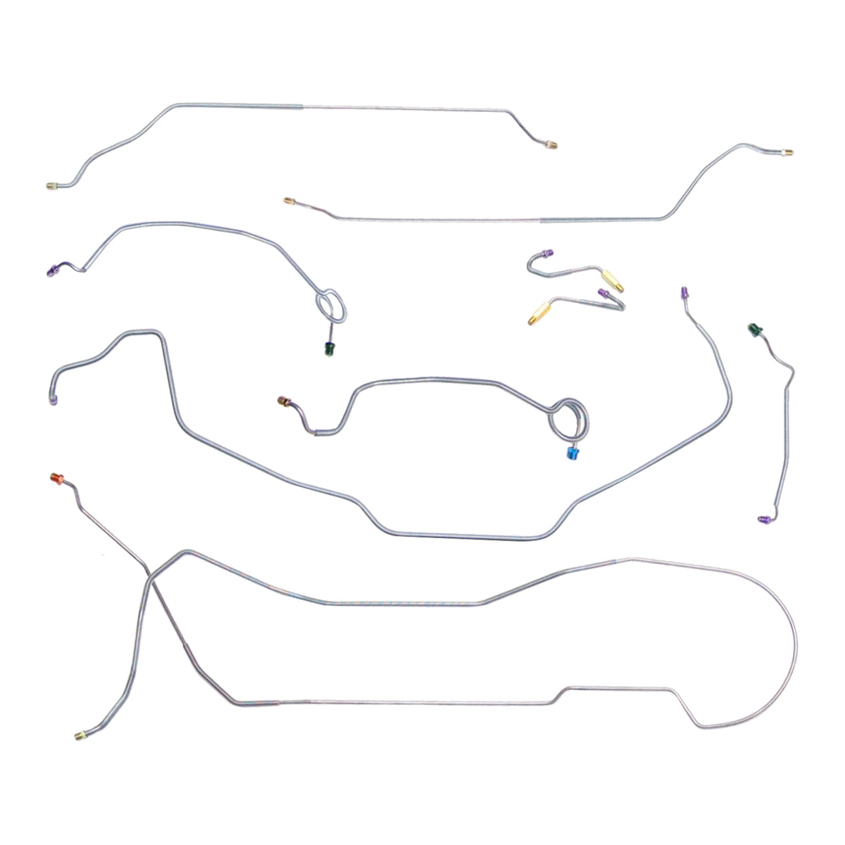 This preformed complete brake line kit will replace all the metal brake lines on your vehicle and includes the master cylinder lines, left front line and right-front crossover line, intermediate lines, and rear axle lines/trailing arm lines.