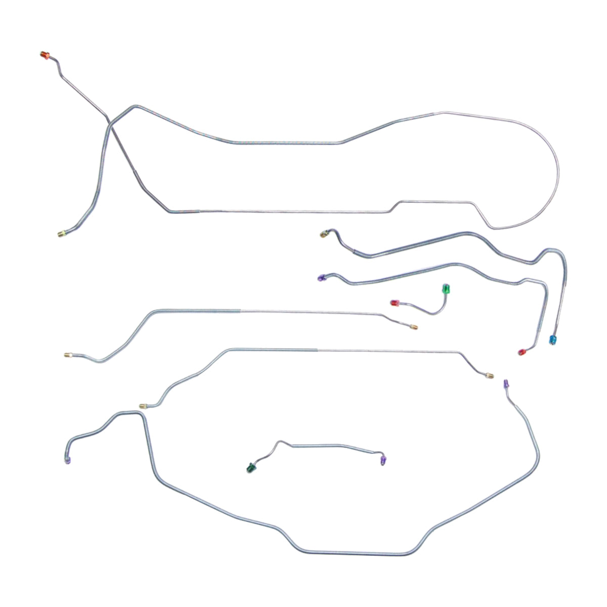 This preformed complete brake line kit will replace all the metal brake lines on your vehicle and includes the master cylinder lines, left front line and right front crossover line, intermediate lines, and rear axle lines/trailing arm lines.
