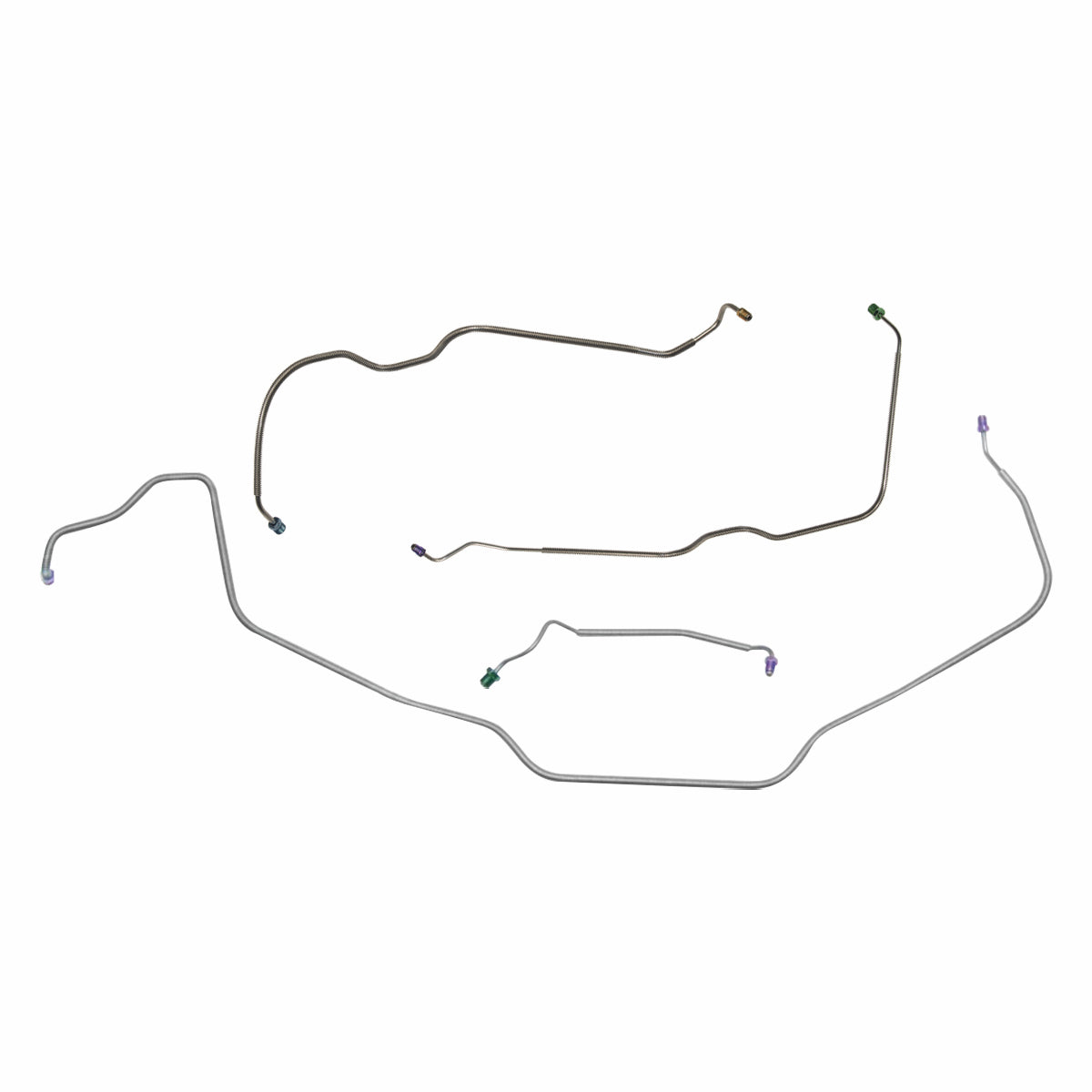 This preformed front brake line kit includes all the metal brake lines to supply the front two wheels of your vehicle and includes the master cylinder lines, left front line, and right front crossover line.