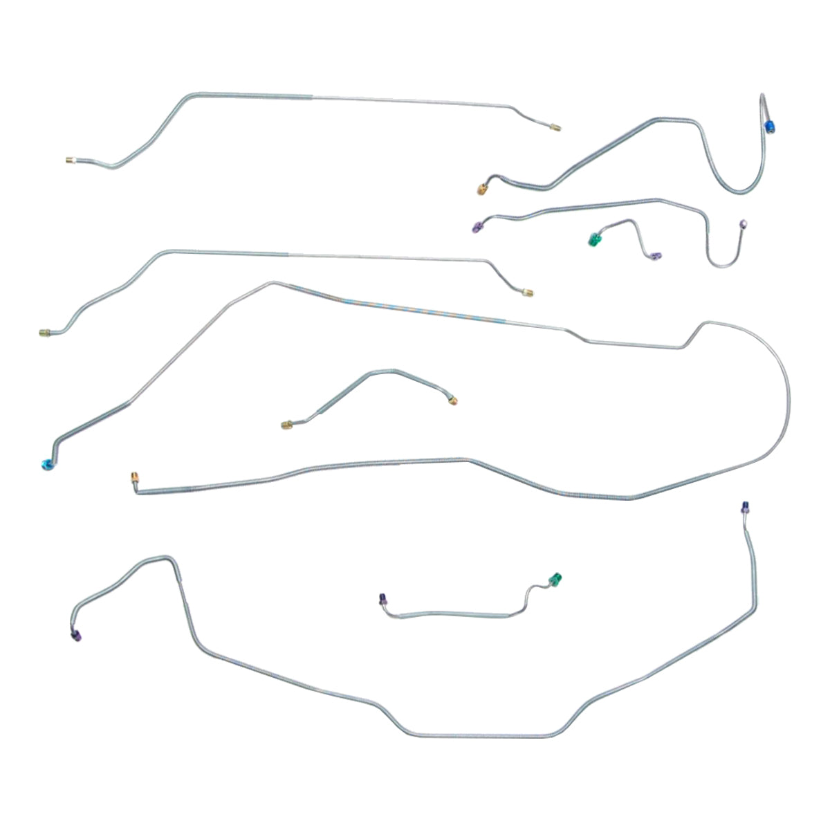 This preformed complete brake line kit will replace all the metal brake lines on your vehicle and includes the master cylinder lines, left front line and right-front crossover line, intermediate lines, and rear axle lines/trailing arm lines.