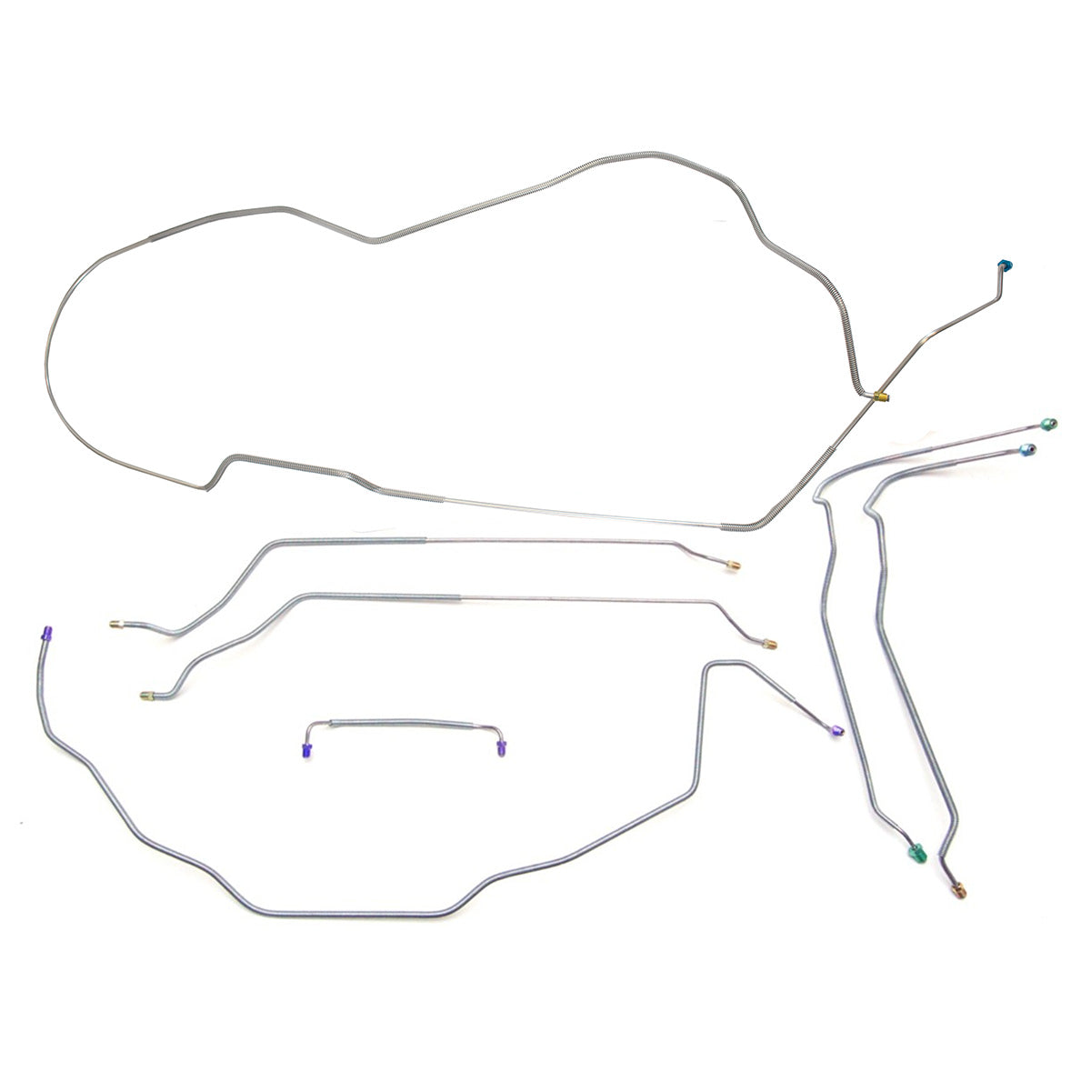This preformed complete brake line kit will replace all the metal brake lines on your vehicle and includes the master cylinder lines, left front line and right-front crossover line, intermediate lines, and rear axle lines/trailing arm lines.